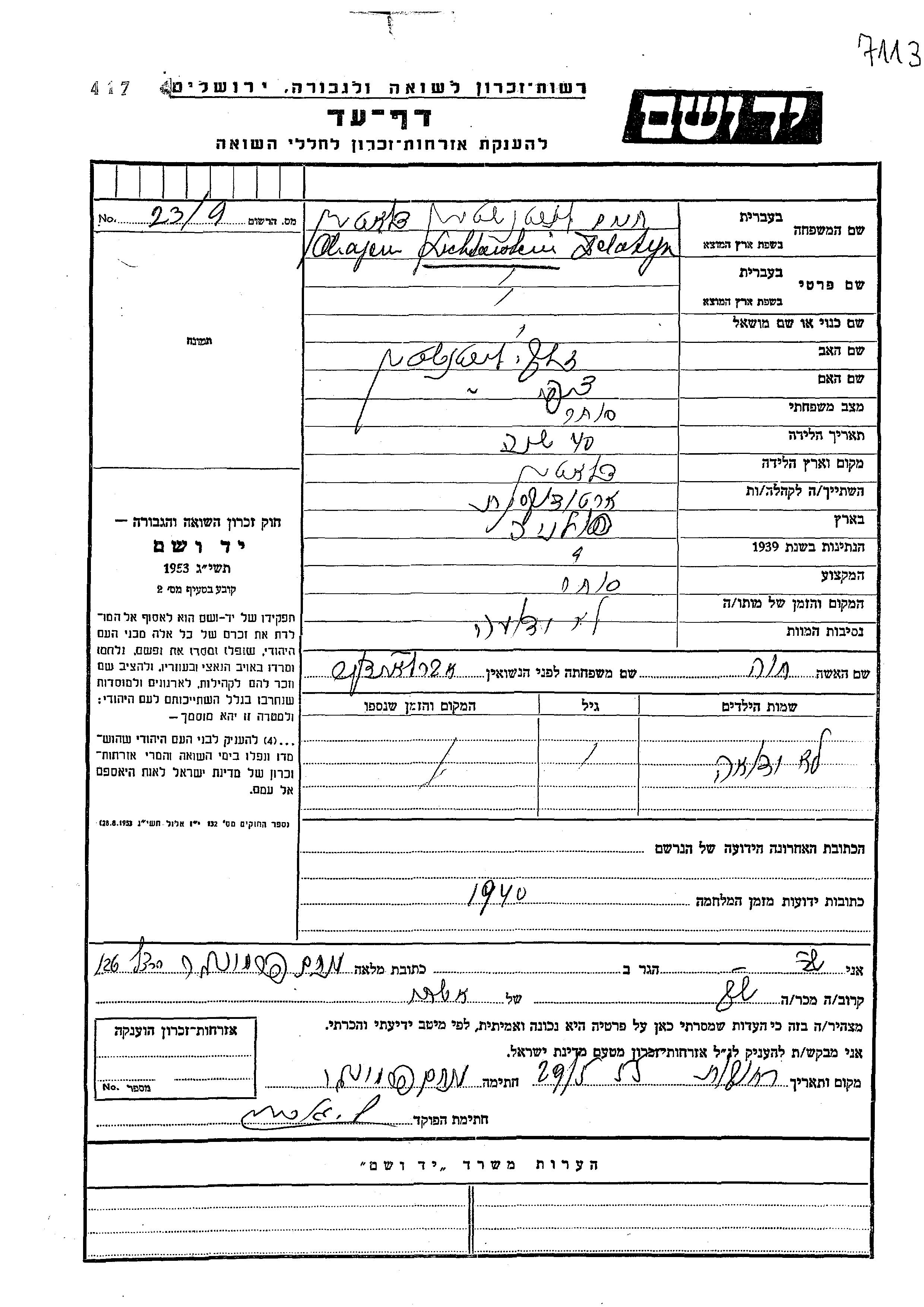Chajem wurde in der Schoah ermordet. Todesort: unbekannt im Jahr 1940.