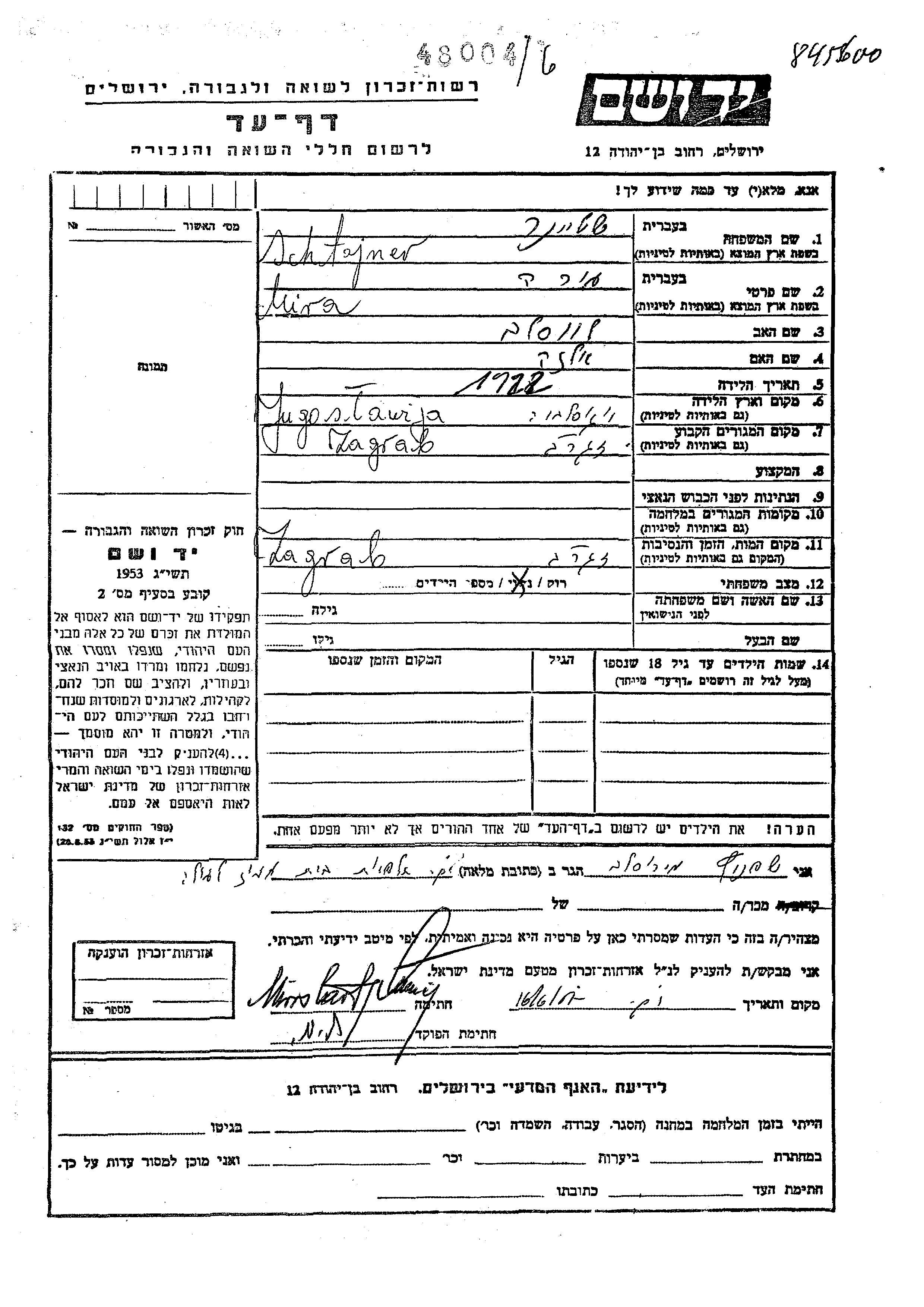 Mira wurde in der Schoah ermordet. Todesort: Zagrab, Jugoslawien.