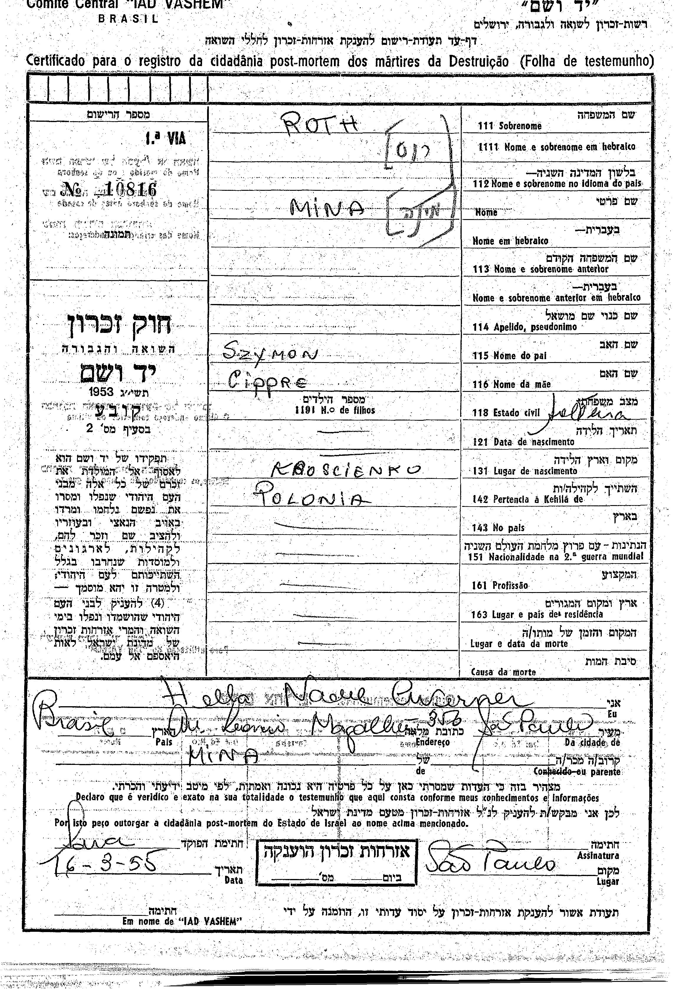 Mina Roth Rut wurde in Kroscienko, Polen geboren. Sie war die Tochter von Szymon und Cippre. Vor dem Zweiten Weltkrieg lebte sie in Polen.
