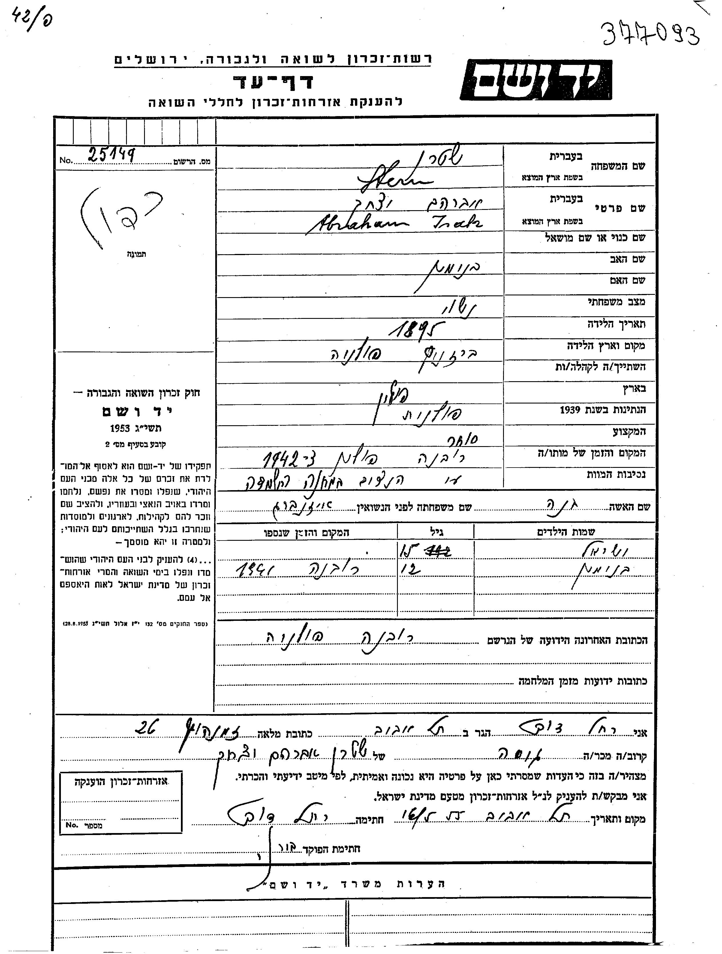 Abraham Isak wurde in der Schoah ermordet. Todesort: Rowna, Polen im Jahr 1942.