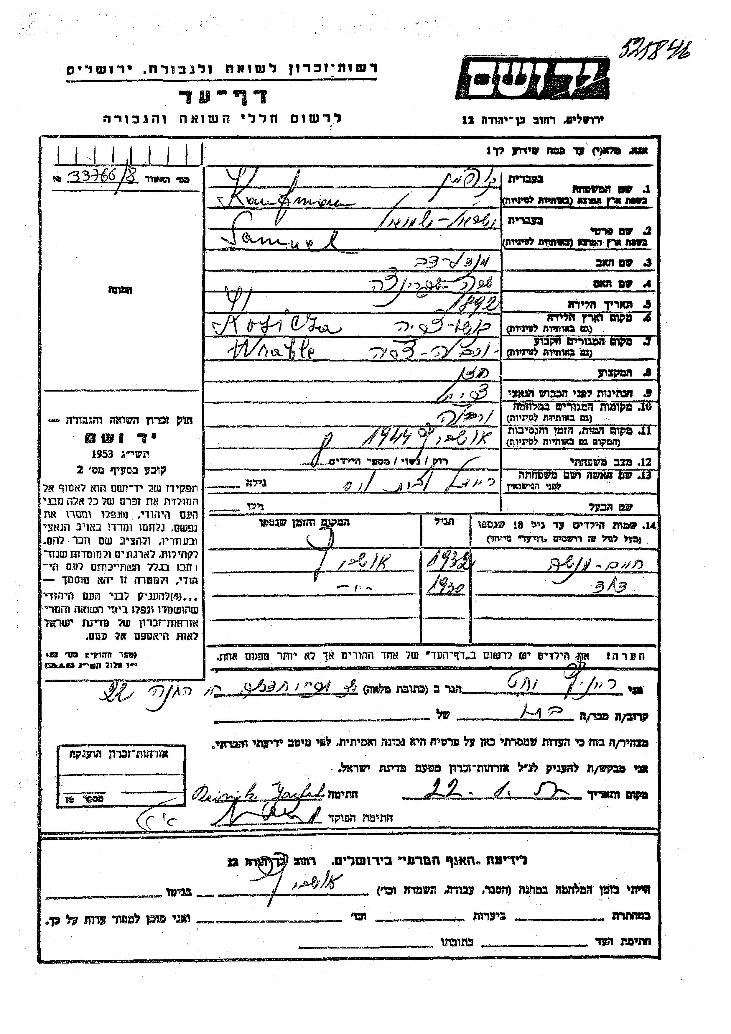 Yisrael Shmuel wurde in der Schoah ermordet. Todesort: Auschwitz, Polen im Jahr 1944.