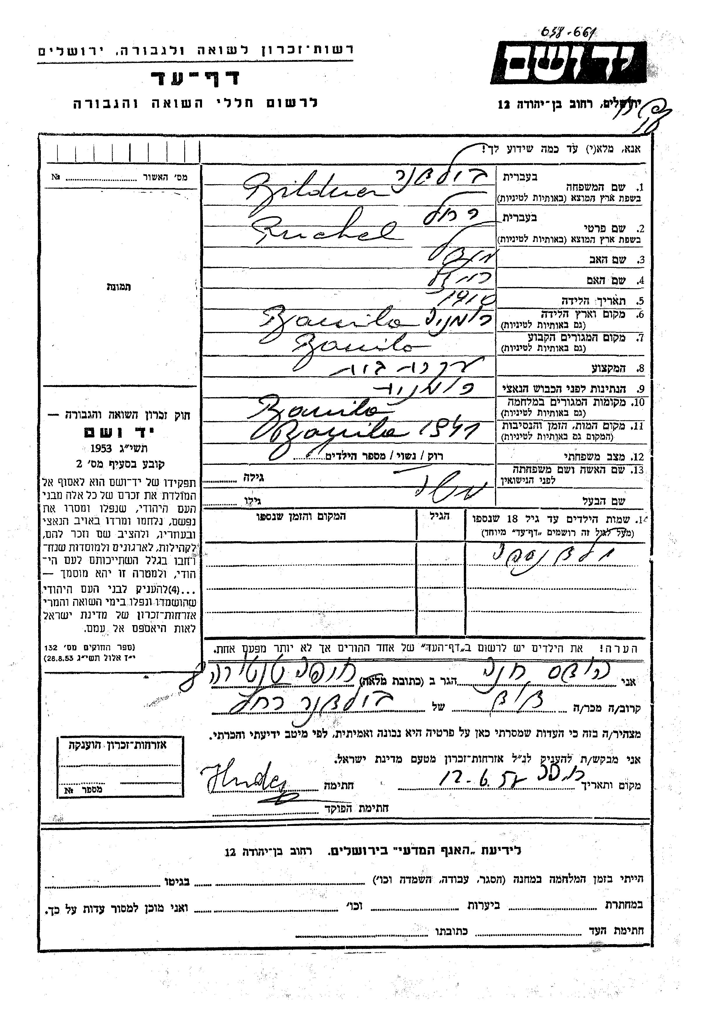 Ruchel wurde in der Schoah ermordet. Todesort: Banila, Rumänien im Jahr 1941.