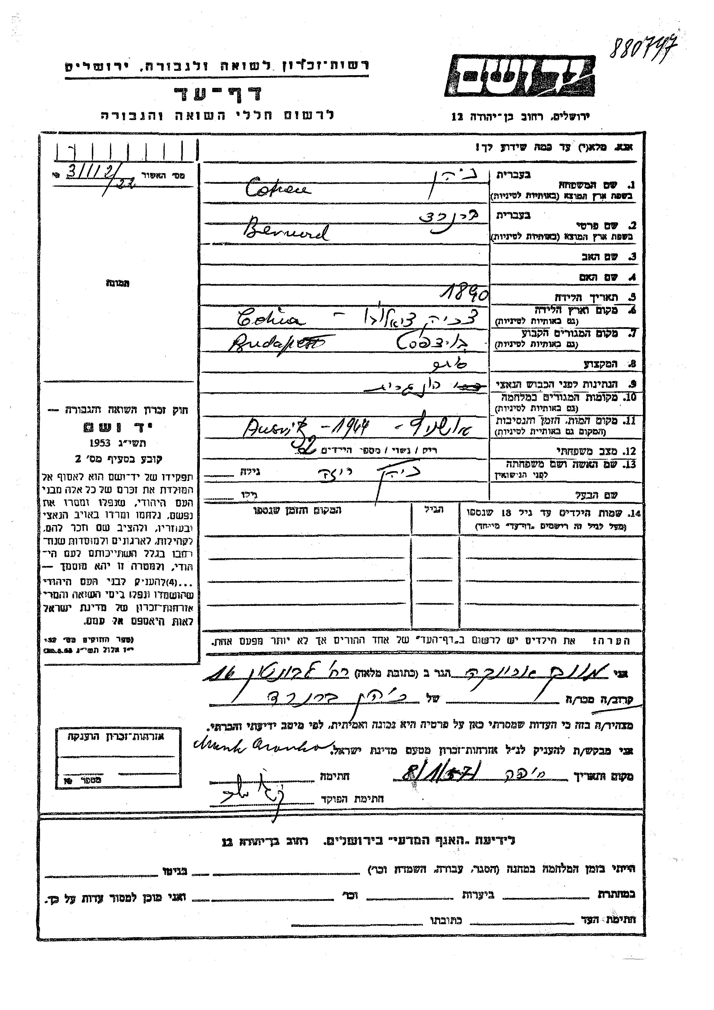 Bernard wurde in der Schoah ermordet. Todesort: Auschwitz, Polen im Jahr 1944.
