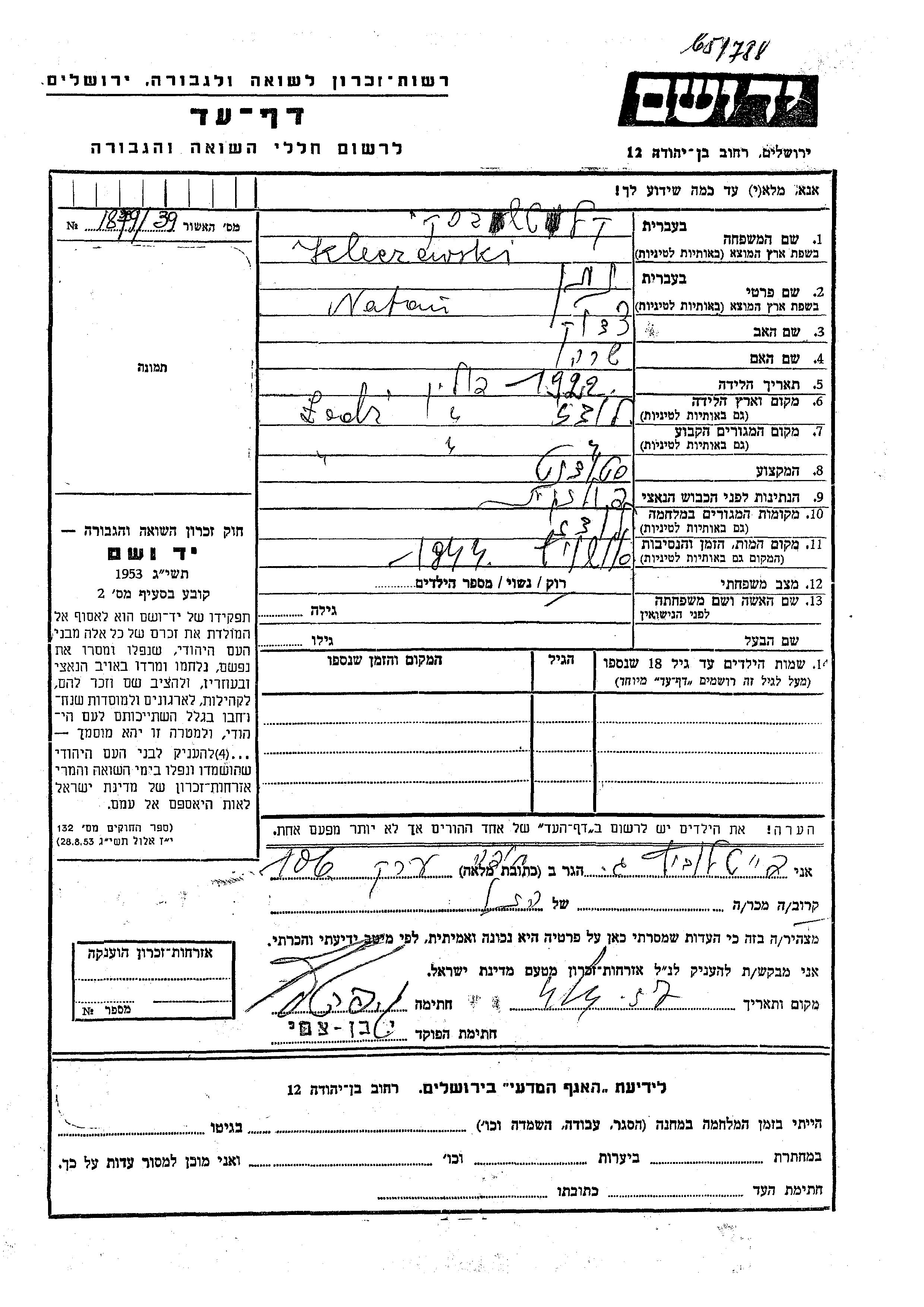 Kleczewski Natan 1922 Lodz, Polen Gedenkblatt