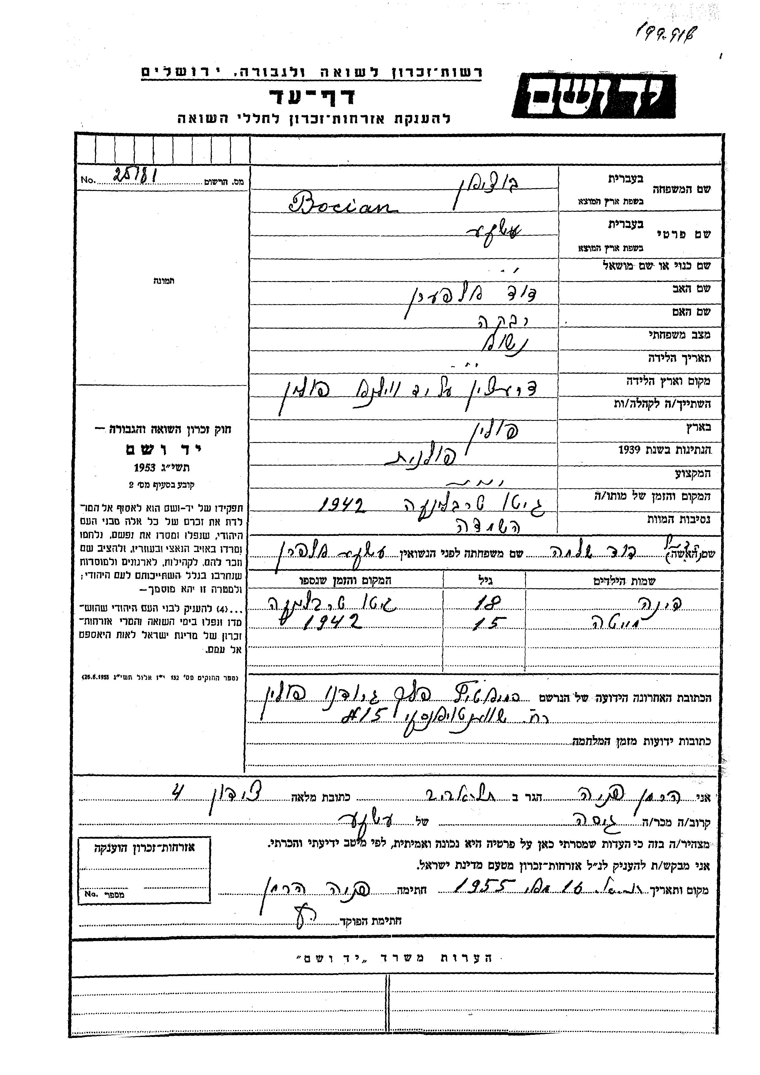 Suche nach einem Todesjahr im Zeitraum der Holocaust: 1933 bis 1945. Bitte wählen Sie 'Exakt' im Auswahlmenü, um nur nach einem einzelnen Jahr zu suchen, alternativ können Sie die flexibleren Optionen '+/- 2 Jahre' oder '+/- 5 Jahre' wählen.