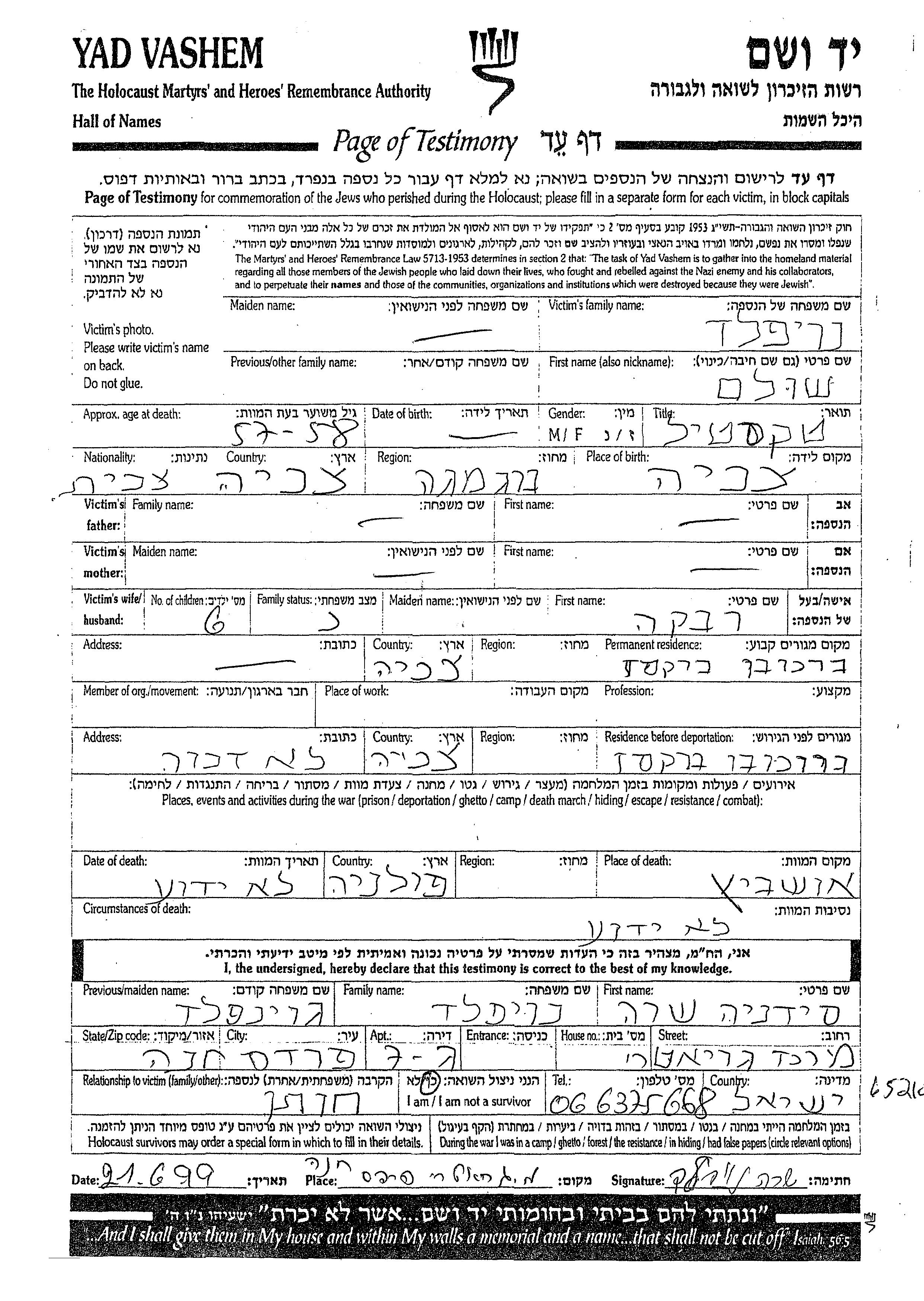 Shalom wurde in der Schoah ermordet. Todesort: Auschwitz, Polen.