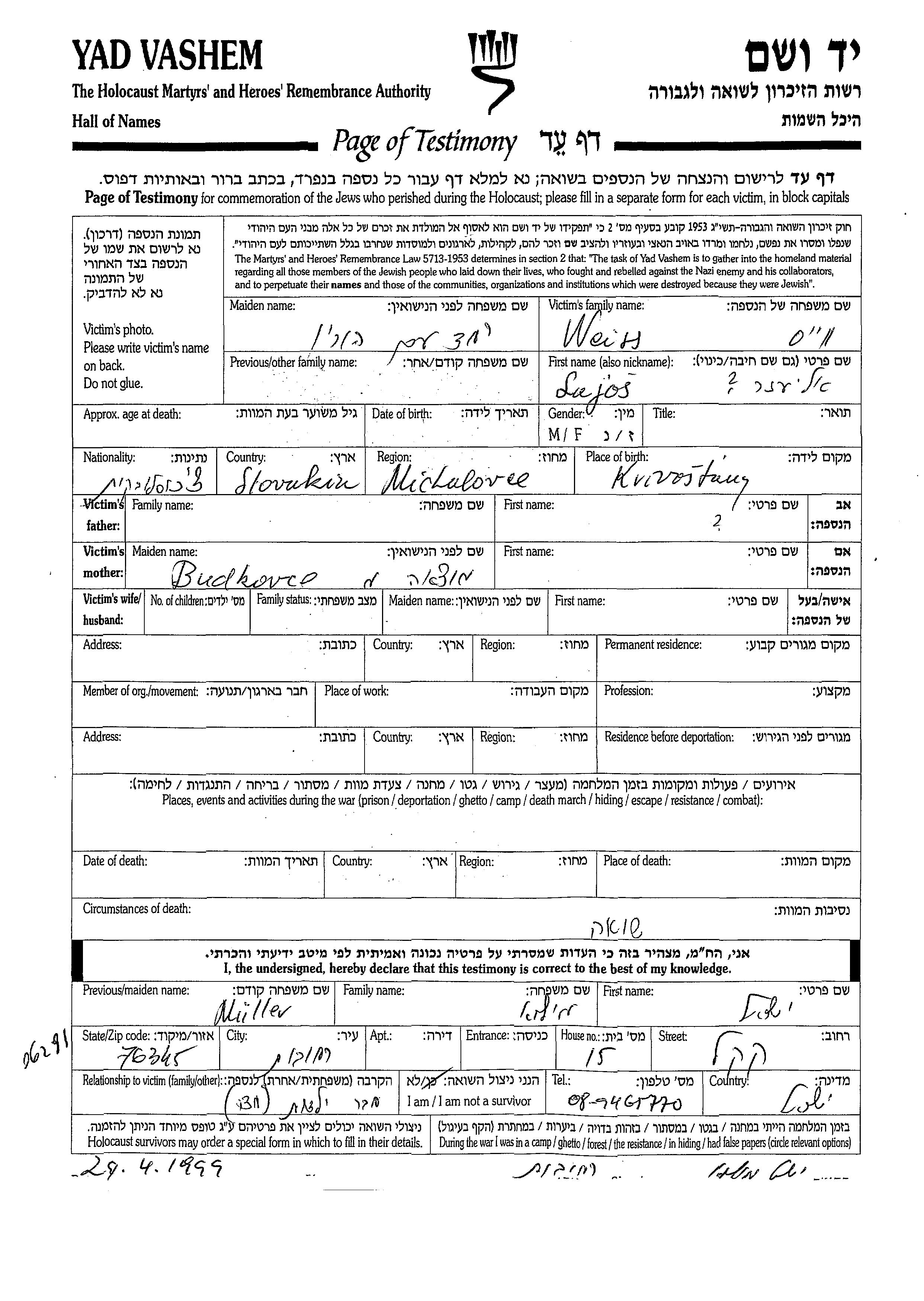 Weiss Lajos Eliezer unbekannter Ort, Gedenkblatt