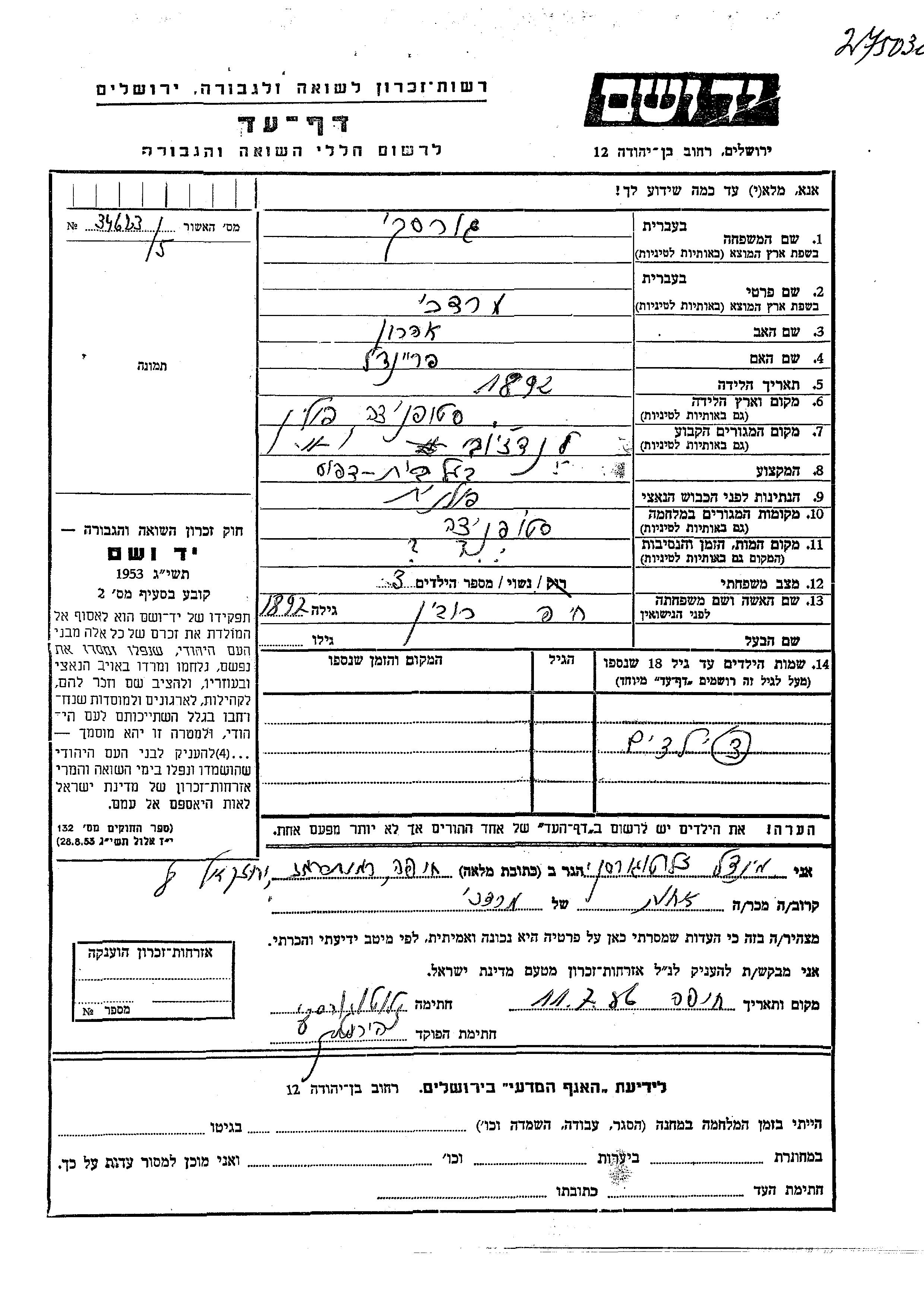 Mordekhai Gorski wurde im Jahr 1892 in Jendrzejov, Polen geboren. Er war der Sohn von Aharon und Freindel. Er war Druckereibesitzer und mit Khaia, geb. Rubin Verheiratet. Vor dem Zweiten Weltkrieg lebte er in Jendrzejov, Polen. Während des Krieges war er in Stopnica, Polen.