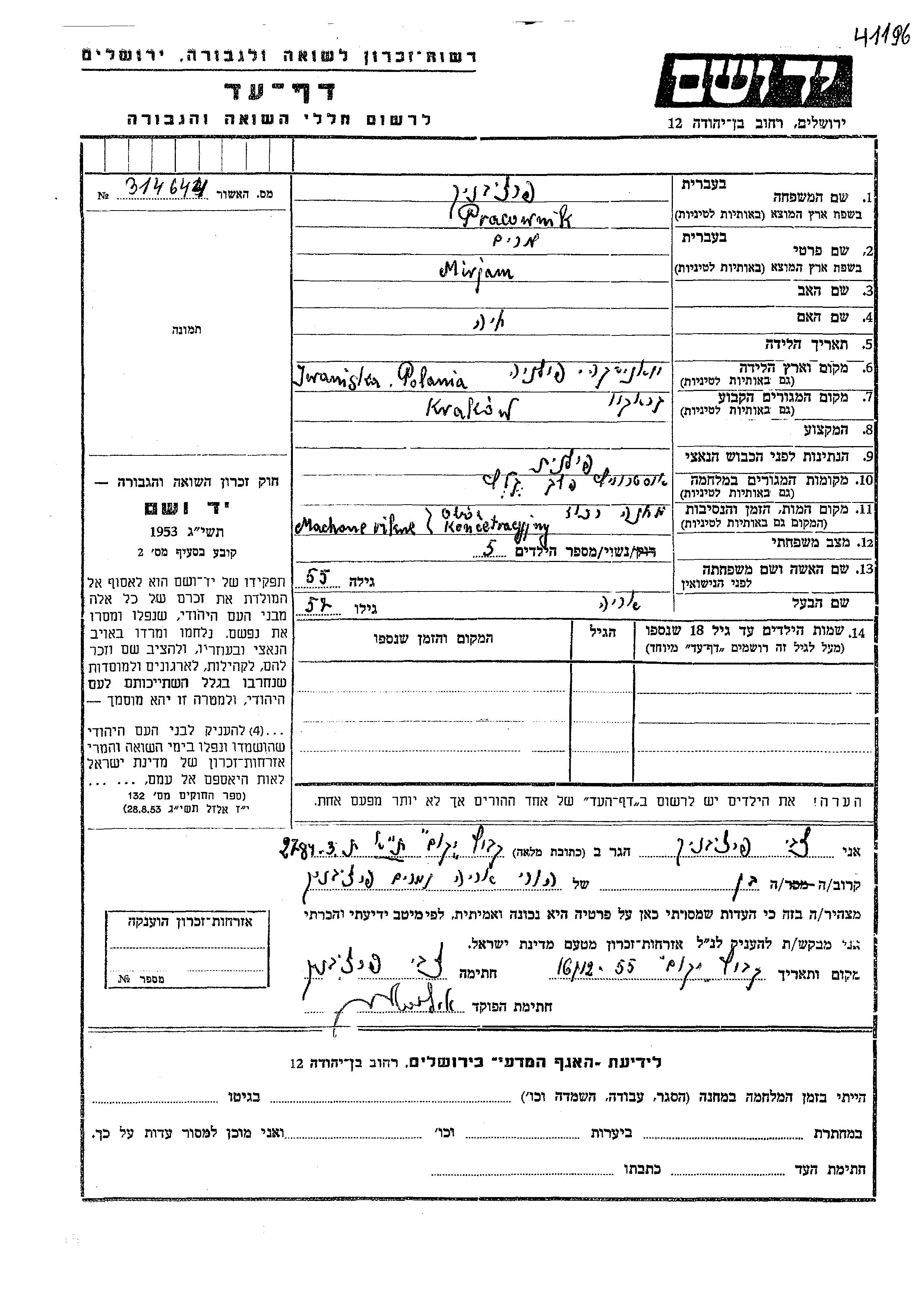 Pracownik Mirjam Krakow, Polen Gedenkblatt