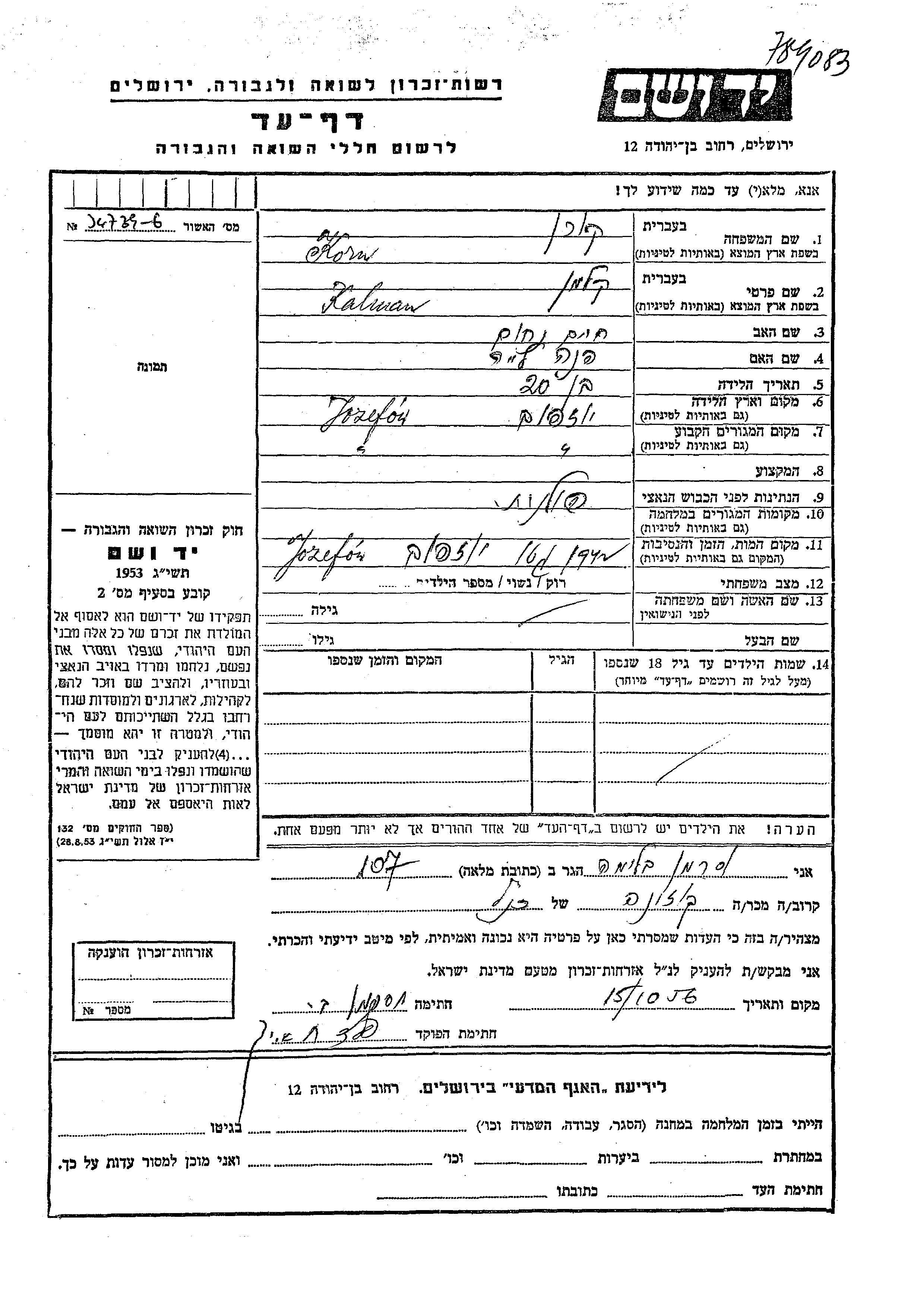 Kalman wurde in der Schoah ermordet. Todesort: Jozefow (Bilgoraj), Polen im Jahr 1942.