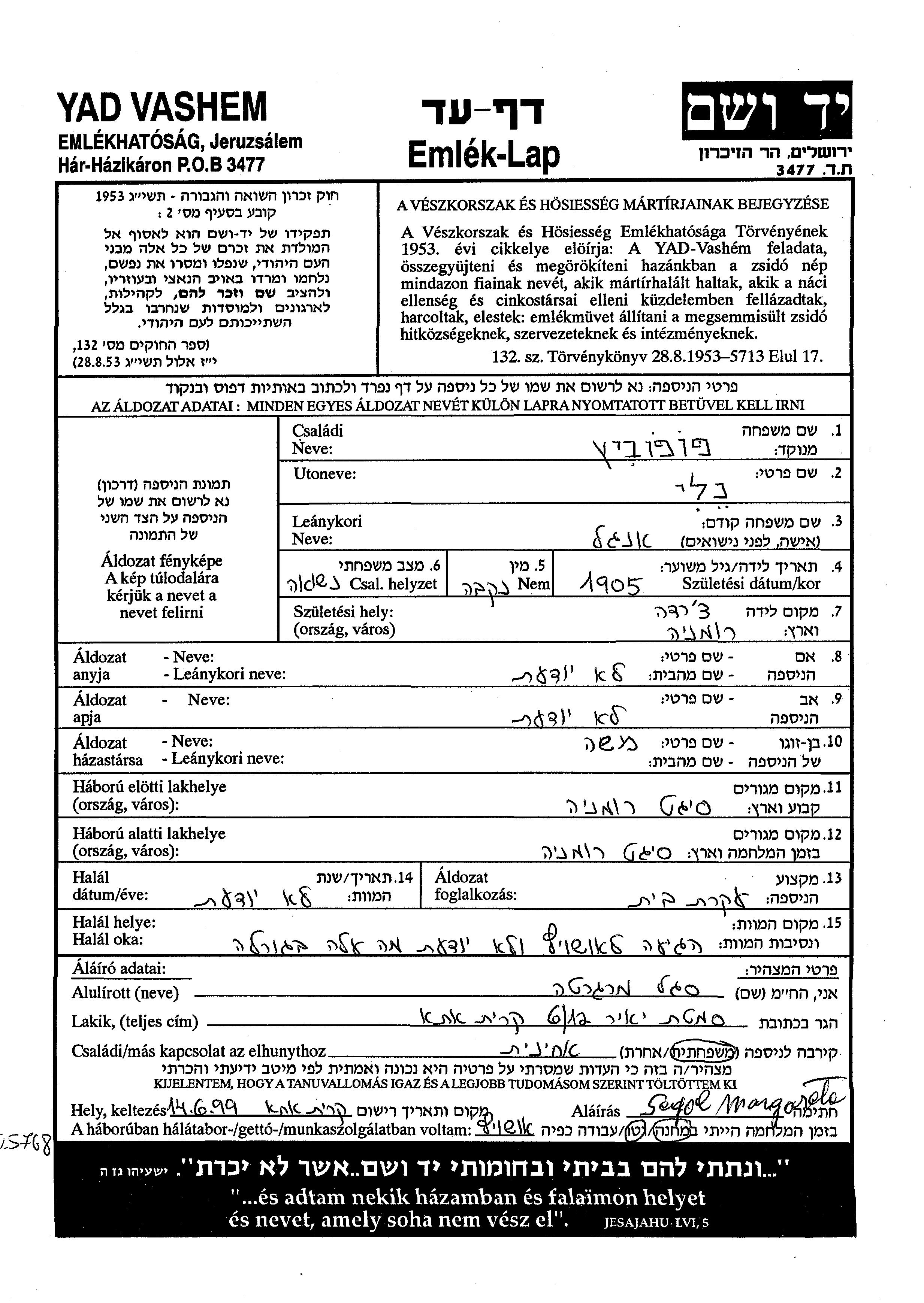 Neli wurde in der Schoah ermordet. Todesort: Auschwitz, Polen.
