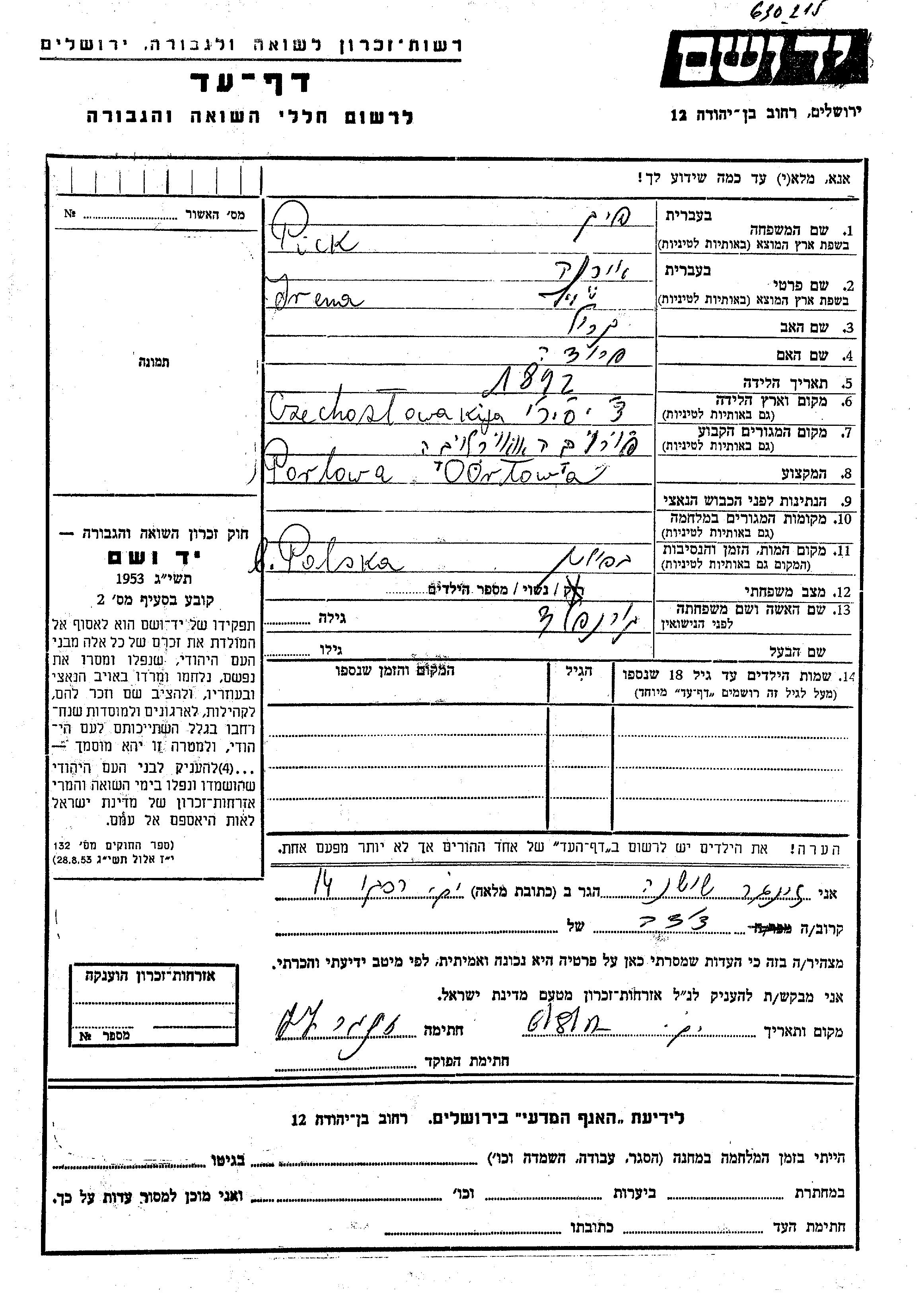 Yad Vashem - Gedenkblätter Sammlung