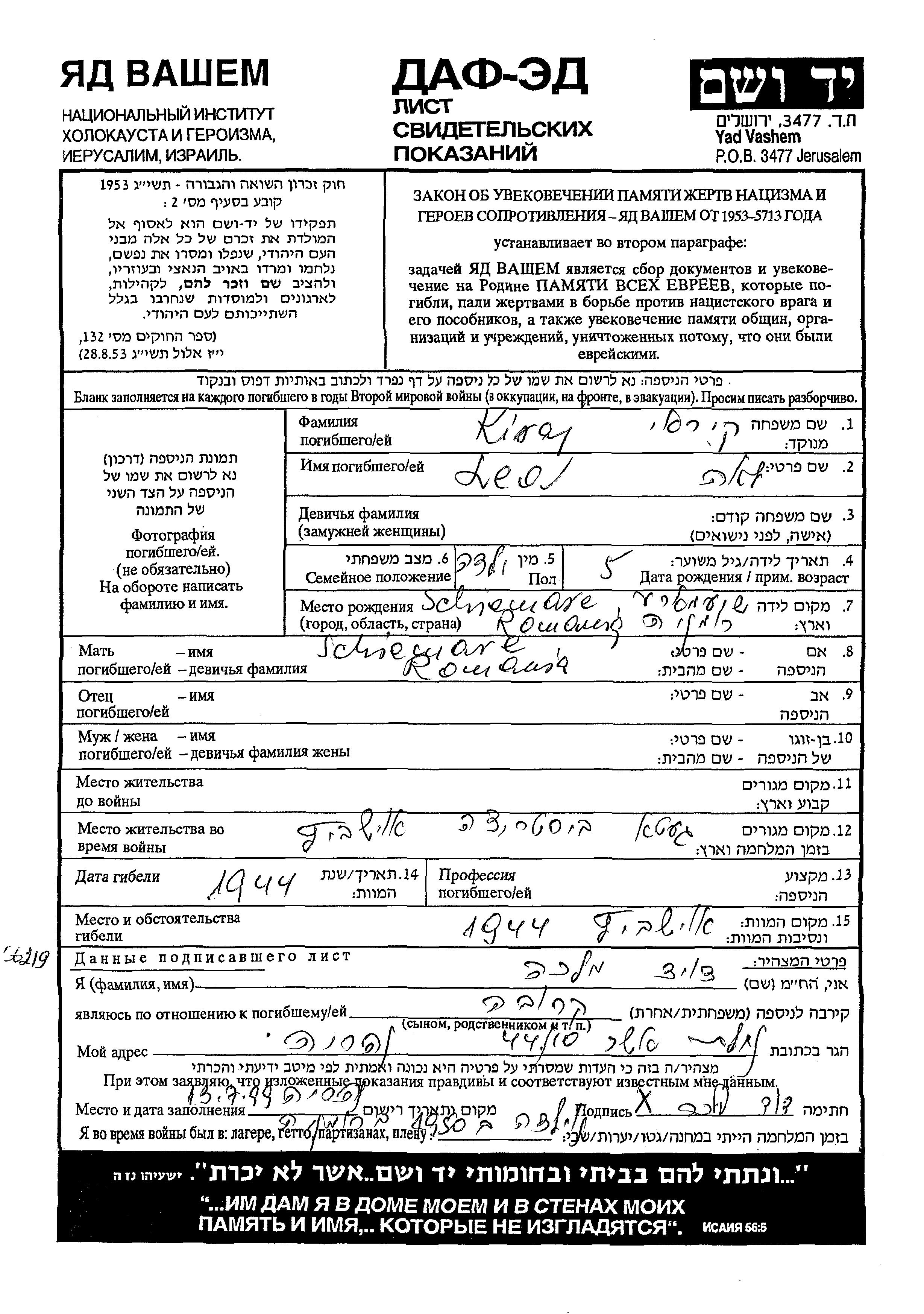 Lea wurde in der Schoah ermordet. Todesort: Auschwitz, Polen im Jahr 1944.