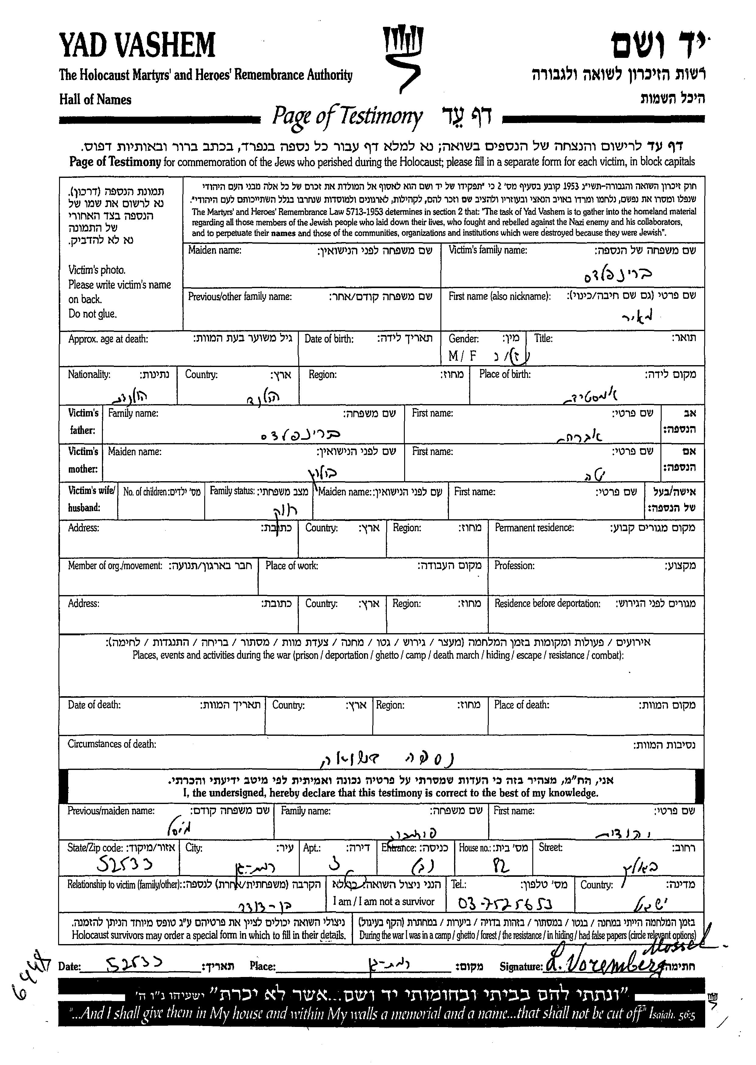 Yad Vashem - Gedenkblätter Sammlung