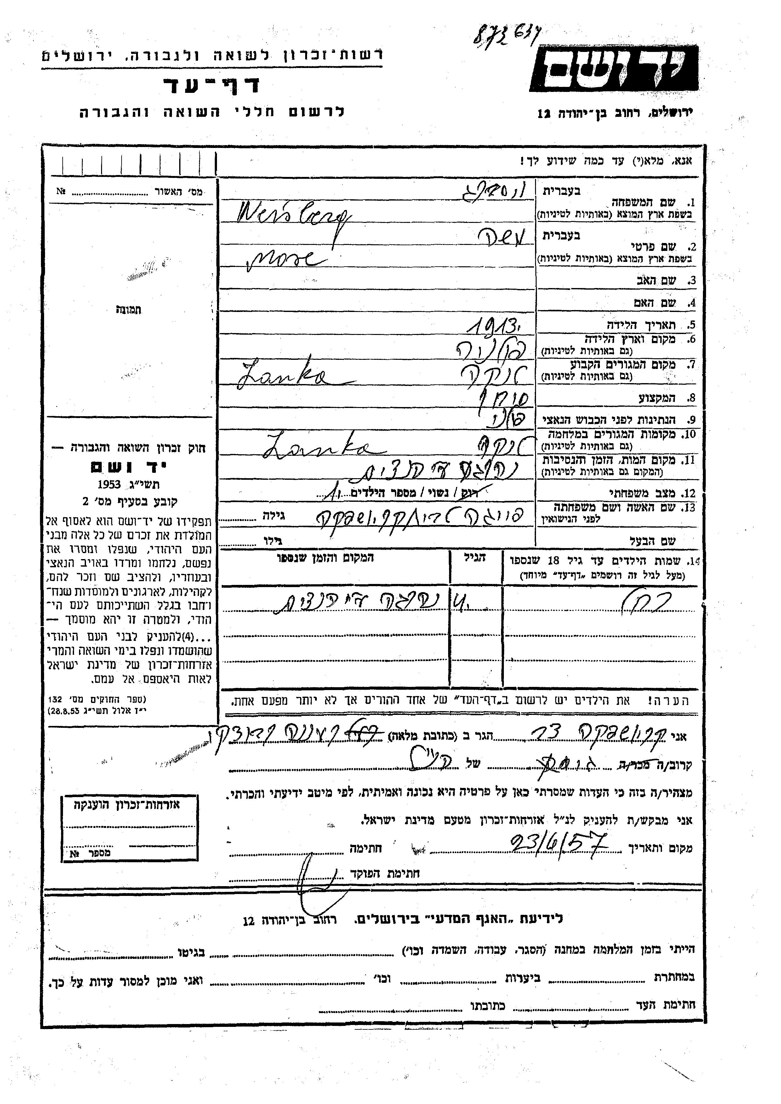 Mose Weisberg wurde im Jahr 1913 in Lanka, Polen geboren. Er war Kaufmann/-frau und mit Feiga, geb. Krivshapka Verheiratet. Vor dem Zweiten Weltkrieg lebte er in Lanka, Polen. Während des Krieges war er in Lanka, Polen.