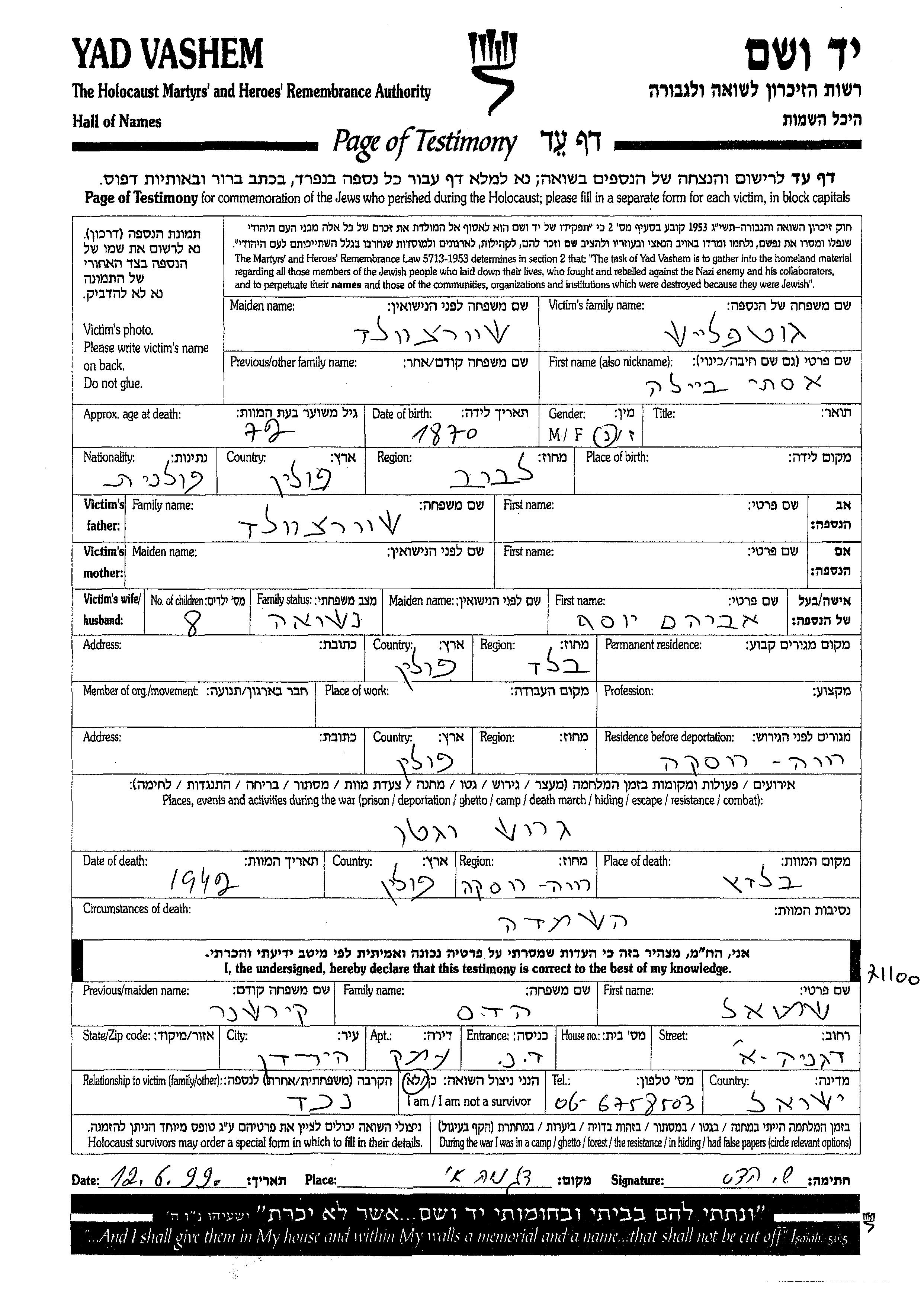 Ester Beila wurde in der Schoah ermordet. Todesort: Belzec, Polen im Jahr 1942.