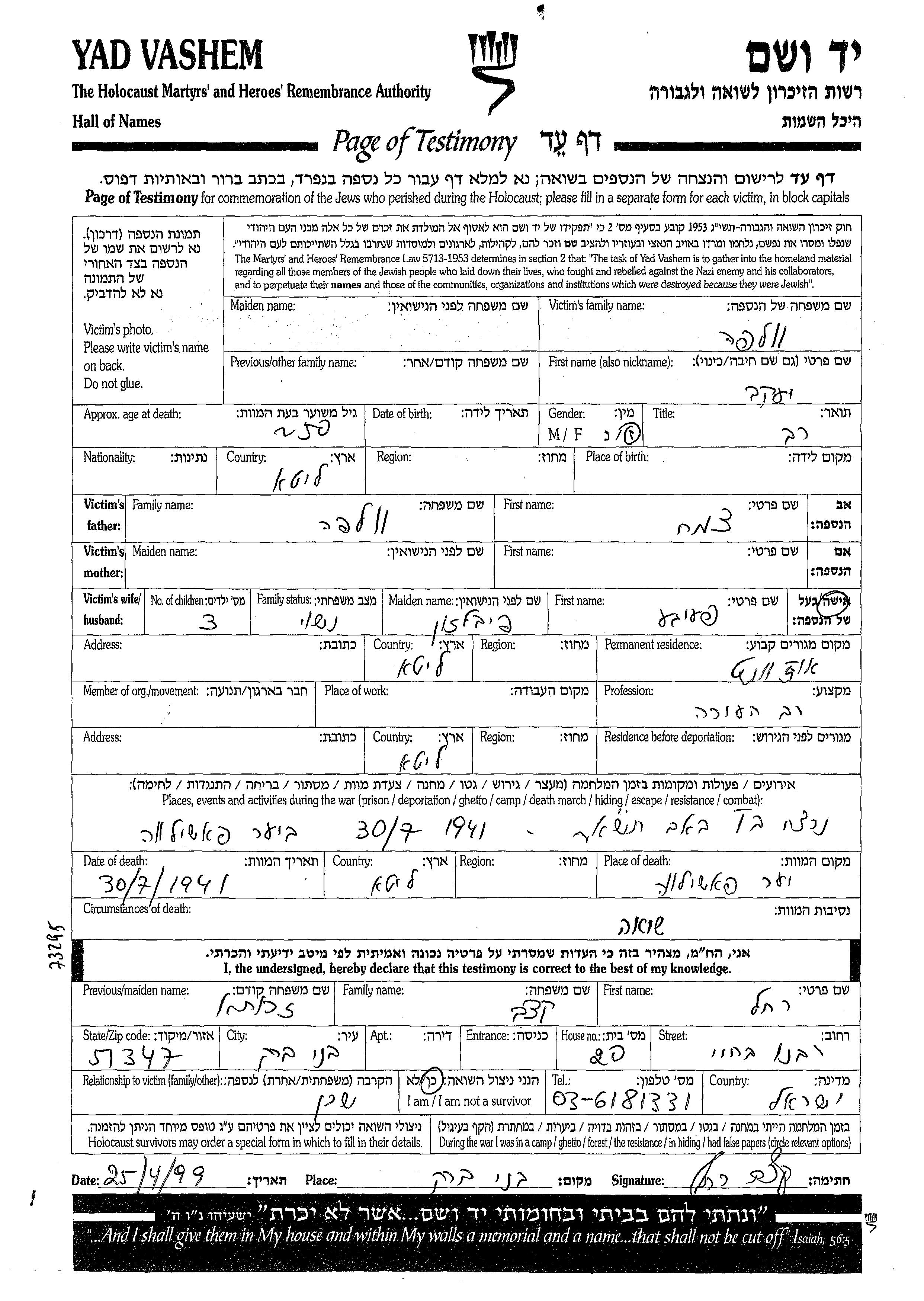 Rabbiner Volpe wurde in der Schoah ermordet. Todesort: Pozelva, Litauen im Jahr 30/07/1941.
