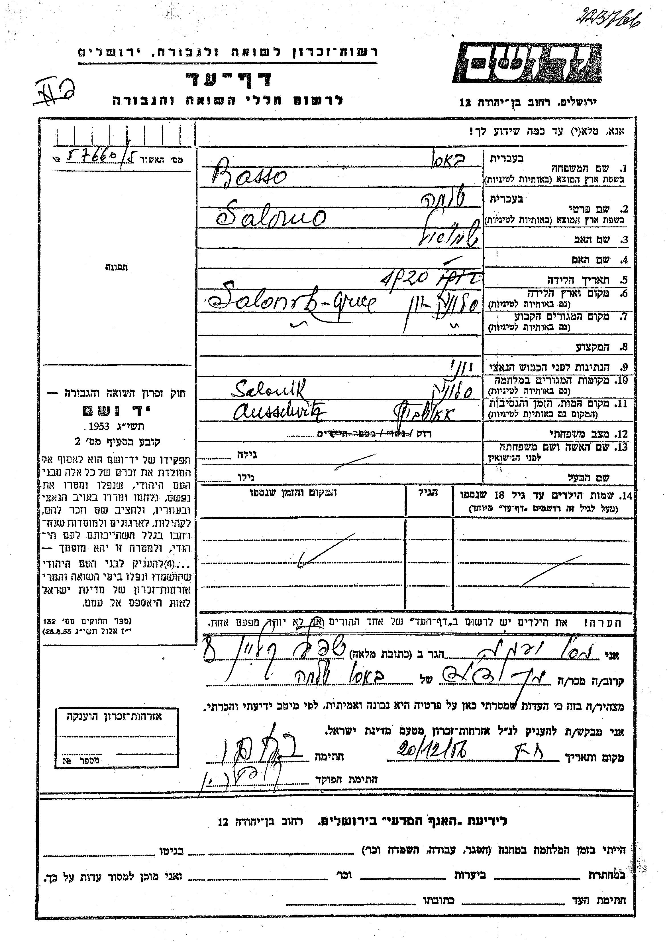 Salmon Basso wurde im Jahr 1920 in Salonika, Griechenland geboren. Er war der Sohn von Shmuel. Er war Ledig. Vor dem Zweiten Weltkrieg lebte er in Salonika, Griechenland. Während des Krieges war er in Salonika, Griechenland.