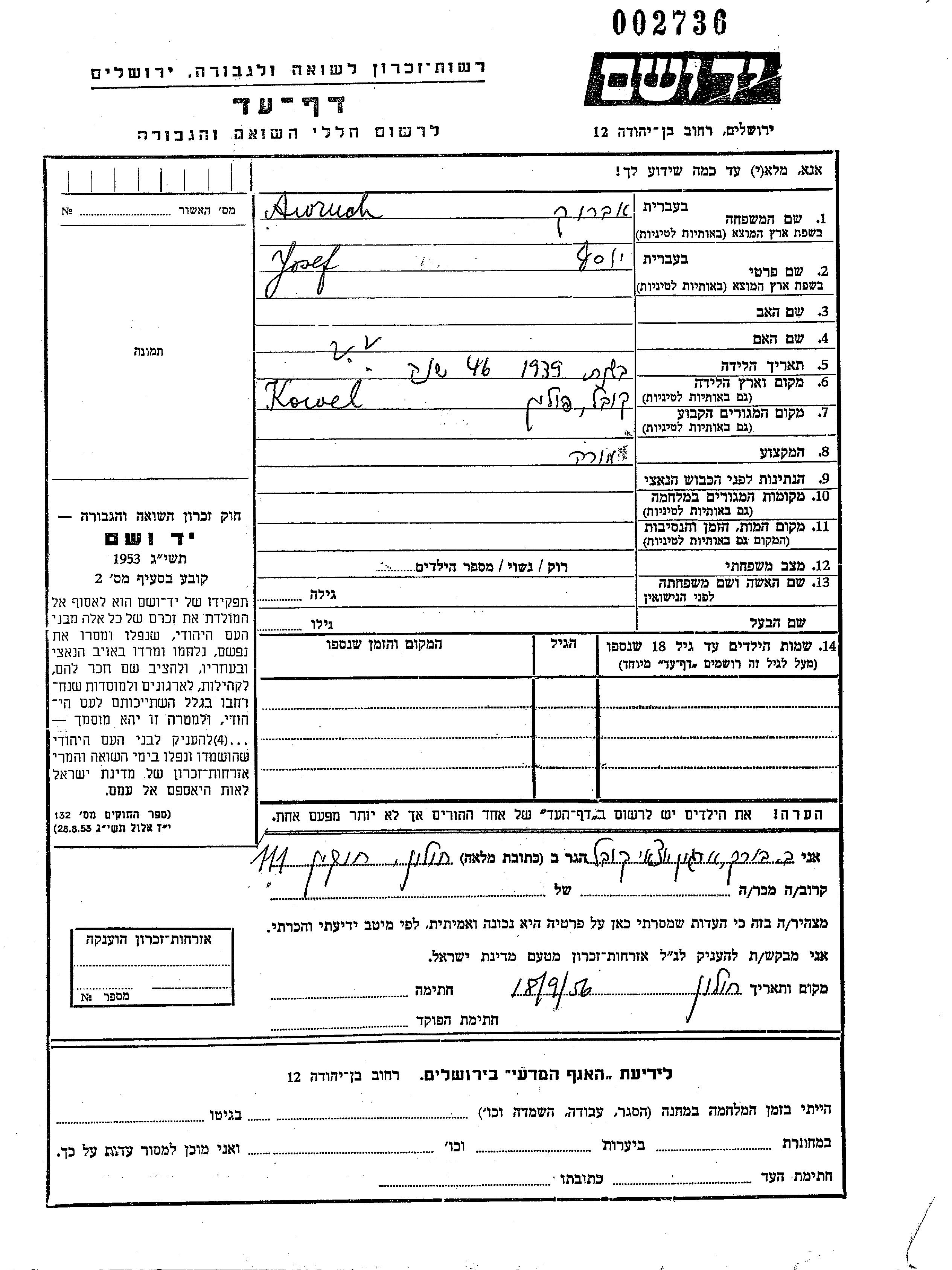 Josef Awruch wurde im Jahr 1893 in Kowel, Polen geboren. Er war Lehrer/in.
