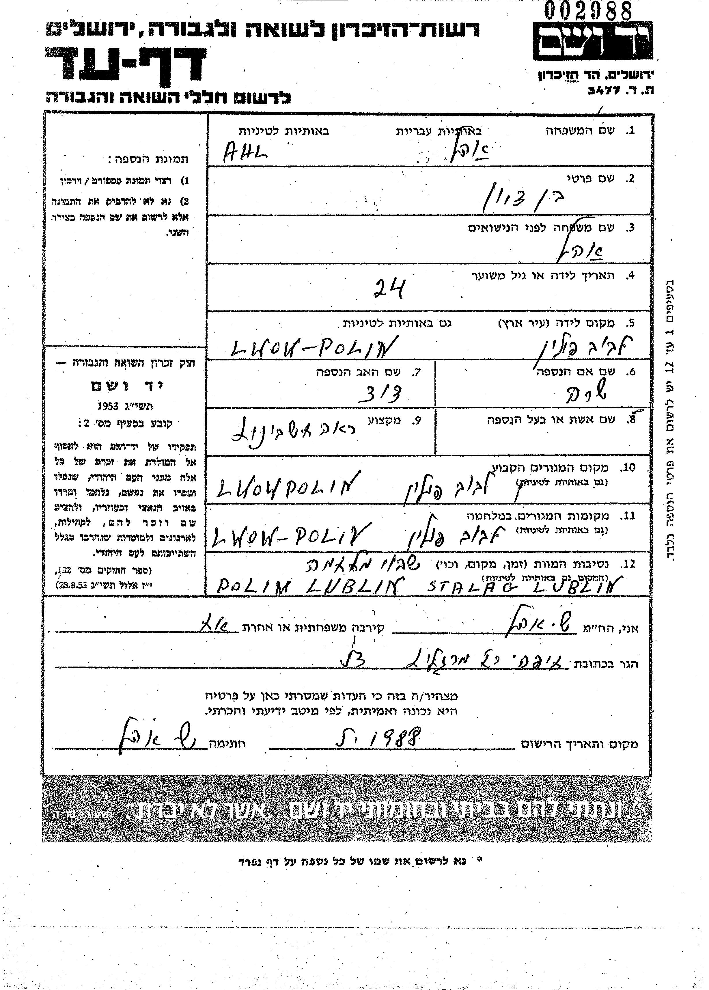 Ben Bentzion wurde in der Schoah ermordet. Todesort: Lublin, Polen.