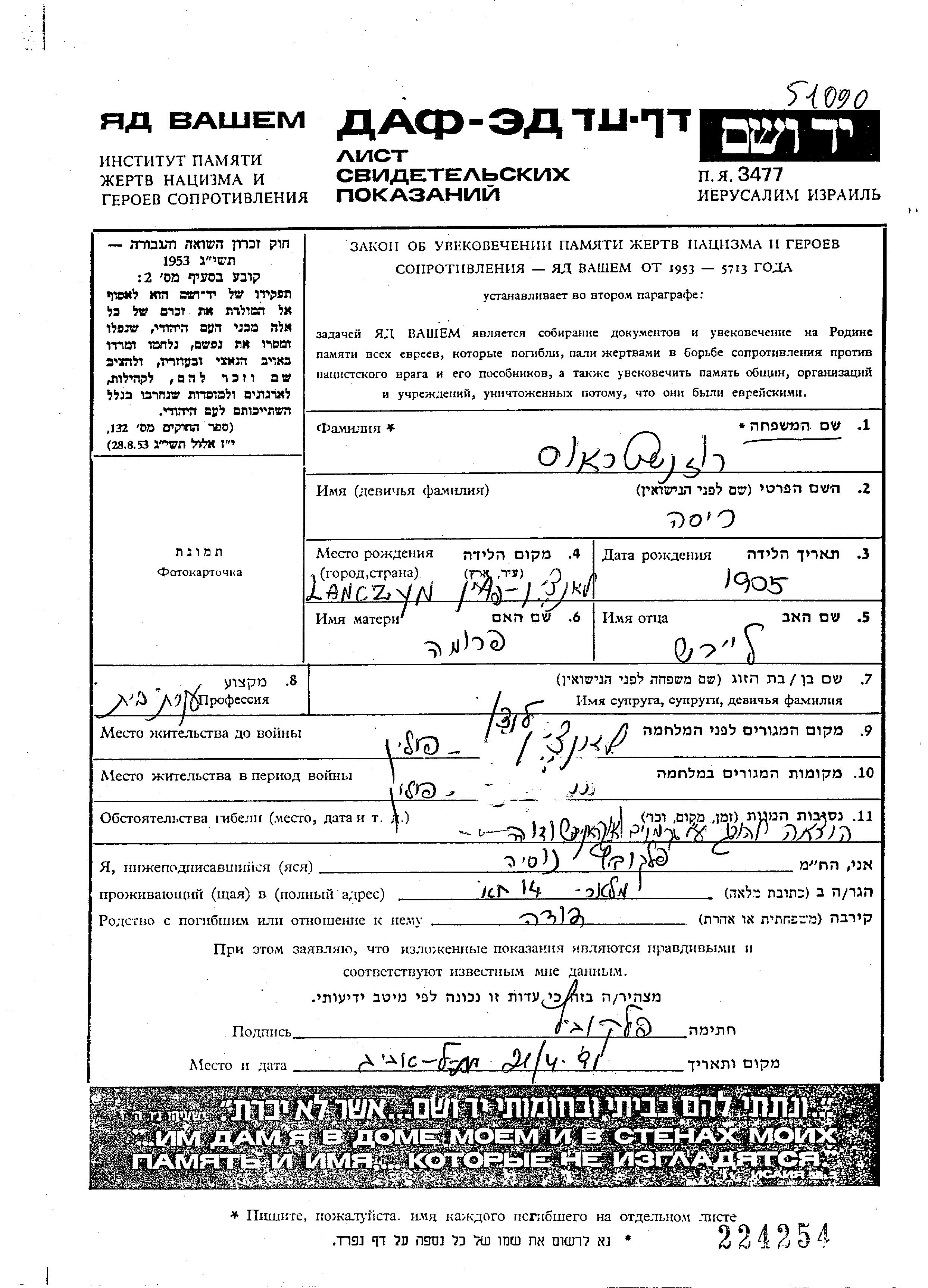 Risa wurde in der Schoah ermordet. Todesort: Lanczyn, Polen.