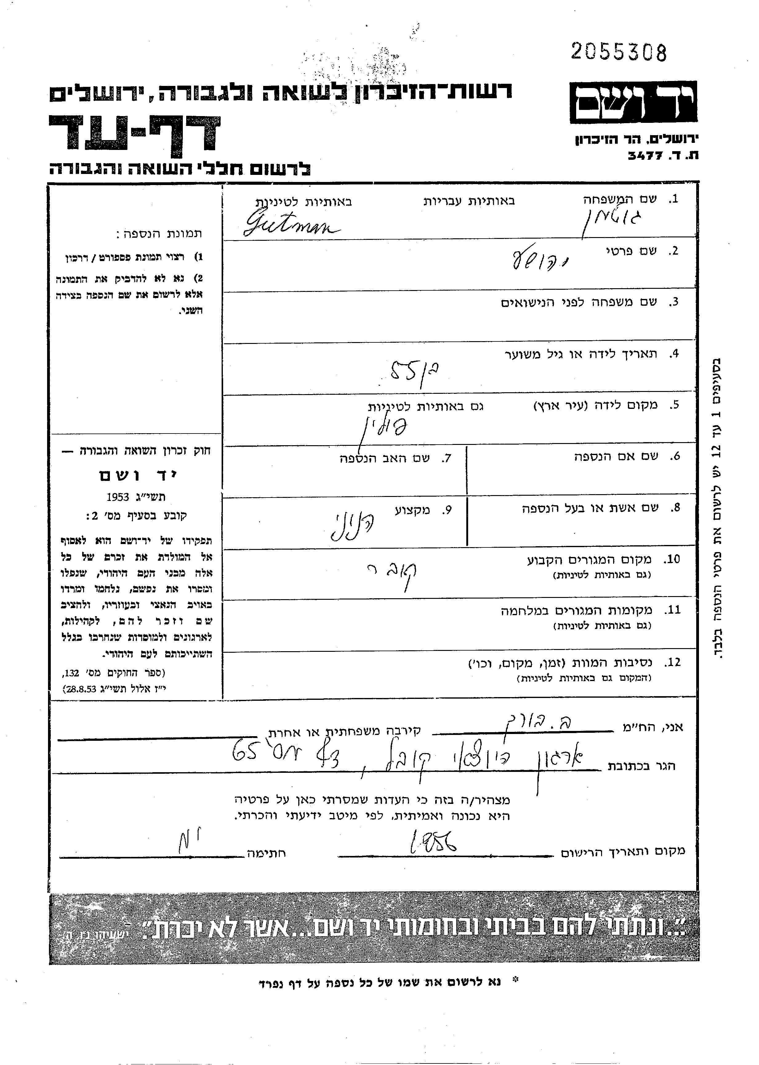 Yehoshua Gutman wurde in Polen geboren. Er war Verkäufer/-in. Vor dem Zweiten Weltkrieg lebte er in Kowel, Polen. Während des Krieges war er in Kowel, Polen.