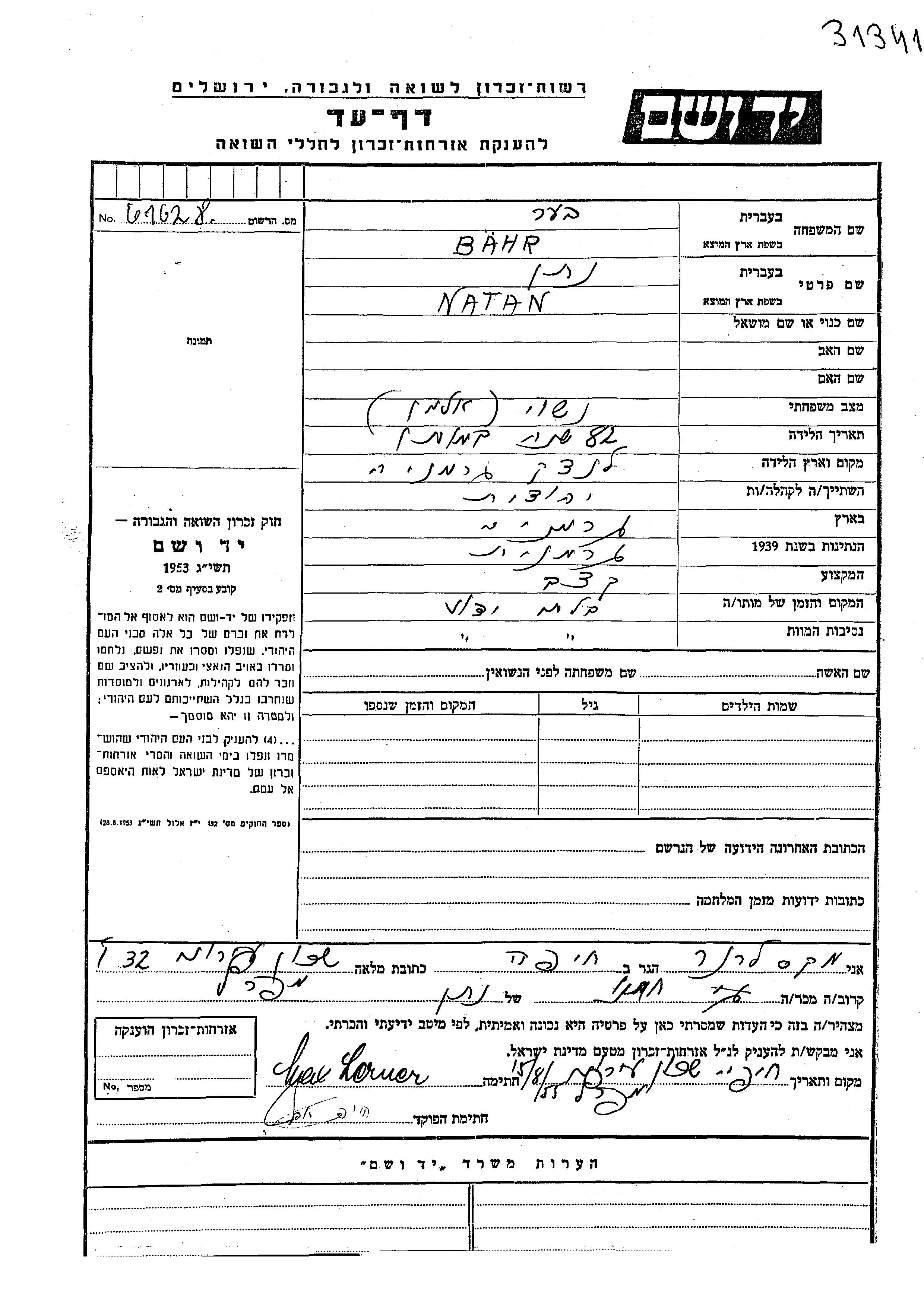Natan Bahr Ber. Er war Metzger/-in.