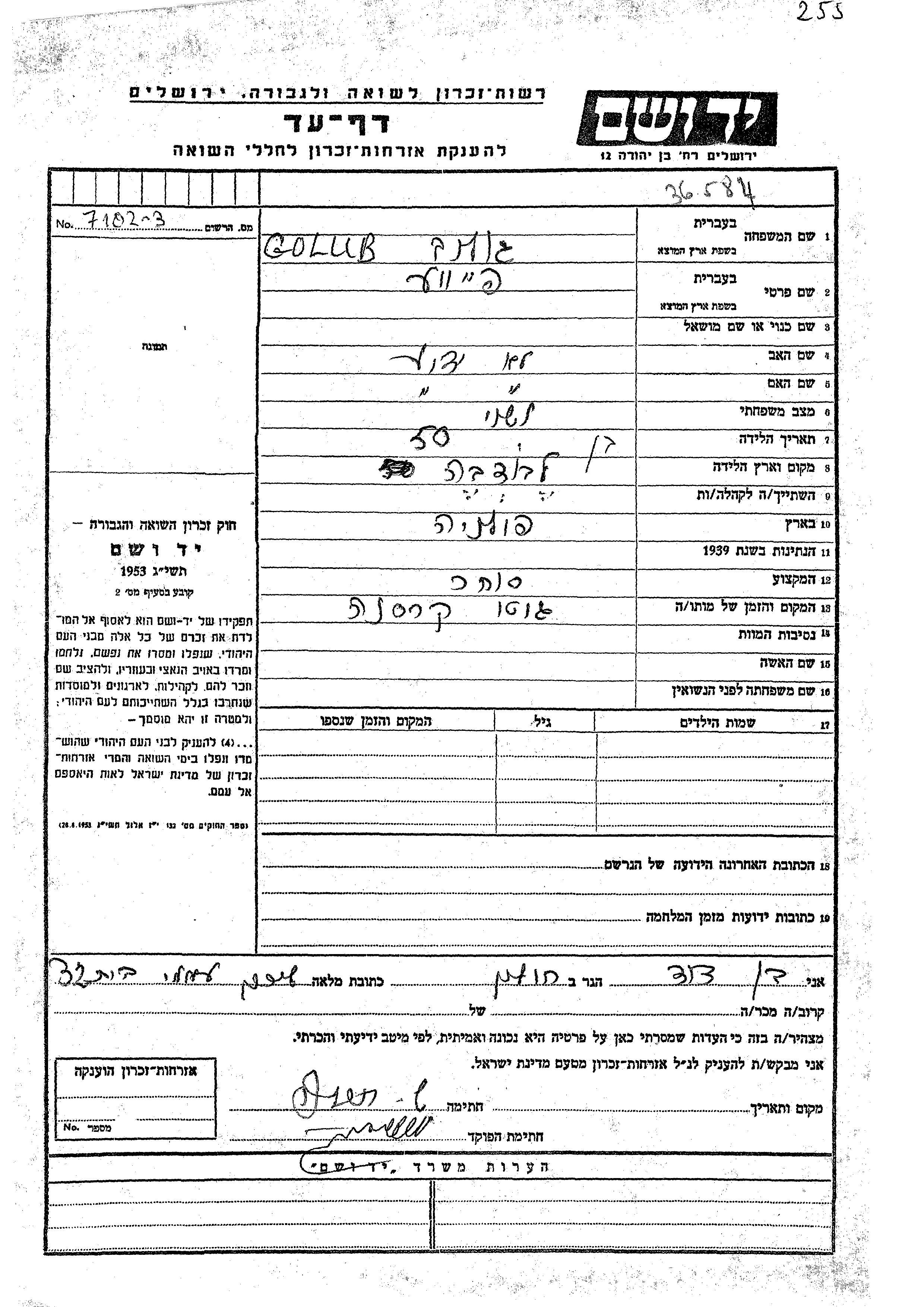 Suche nach einem Todesjahr im Zeitraum der Holocaust: 1933 bis 1945. Bitte wählen Sie 'Exakt' im Auswahlmenü, um nur nach einem einzelnen Jahr zu suchen, alternativ können Sie die flexibleren Optionen '+/- 2 Jahre' oder '+/- 5 Jahre' wählen.