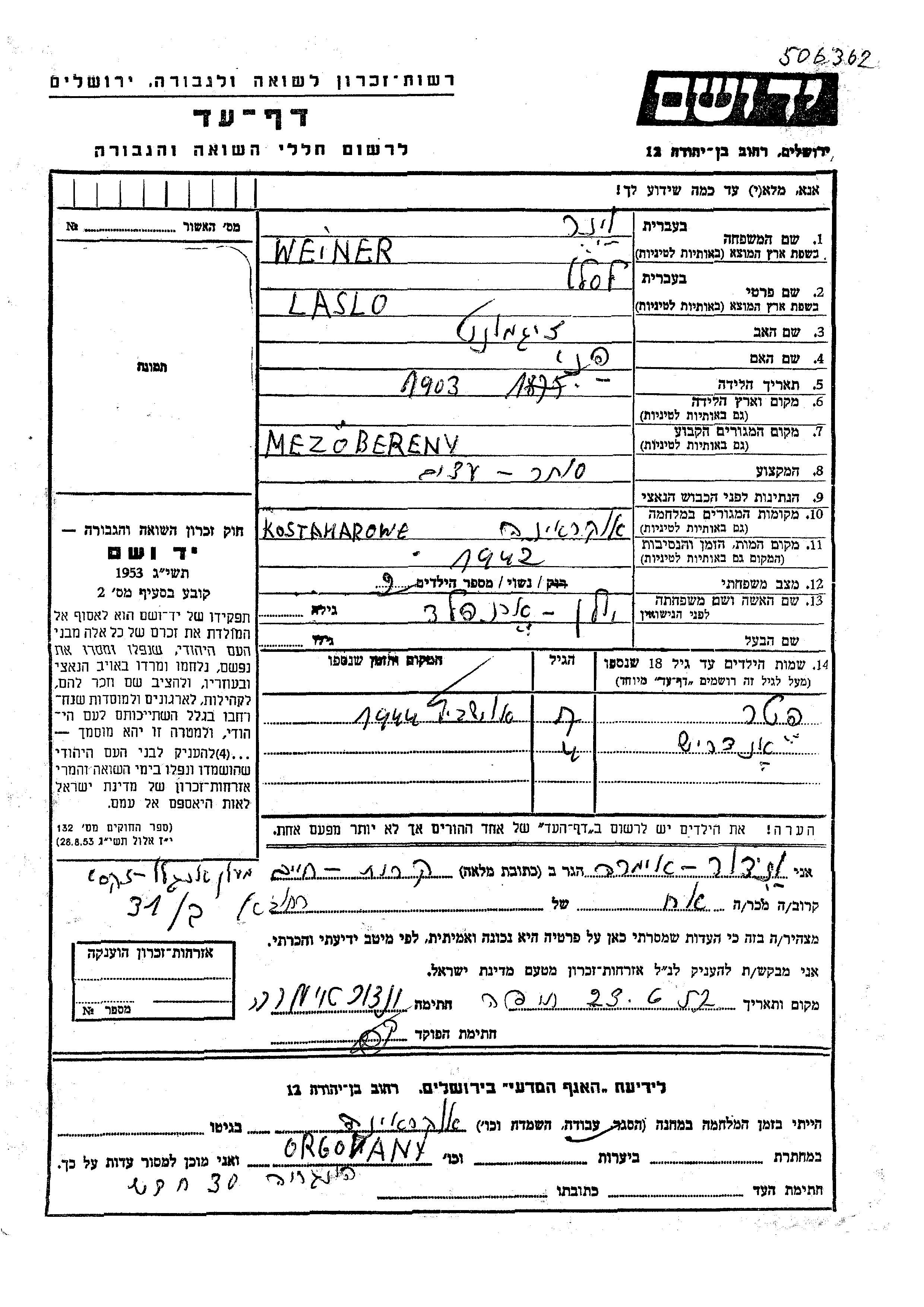 Aufenthaltsort während des Krieges/Schoah