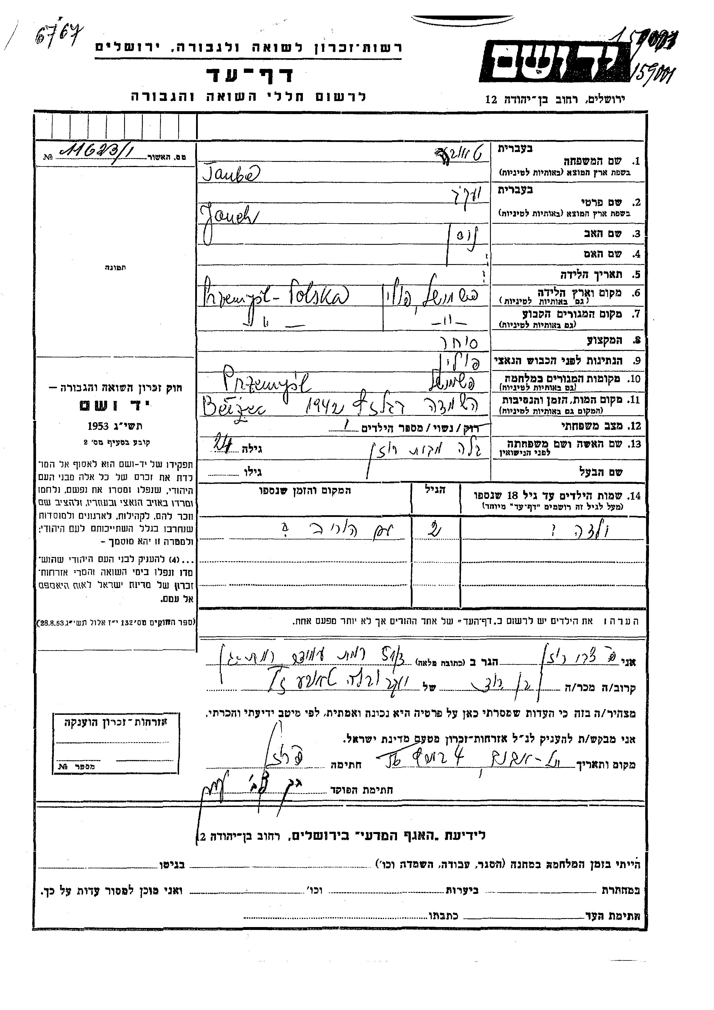 Janek Yaakov wurde in der Schoah ermordet. Todesort: Belzec, Polen im Jahr 1942.