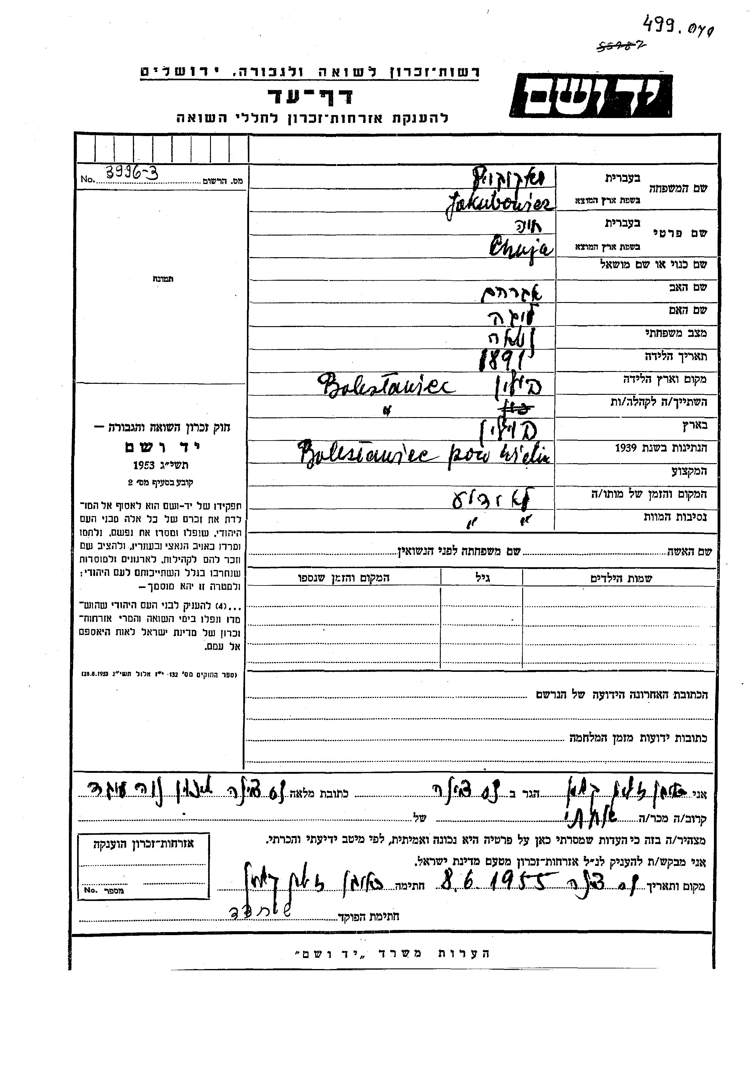 Jakubowicz Chaja 1891 Boleslawiec, Polen Gedenkblatt