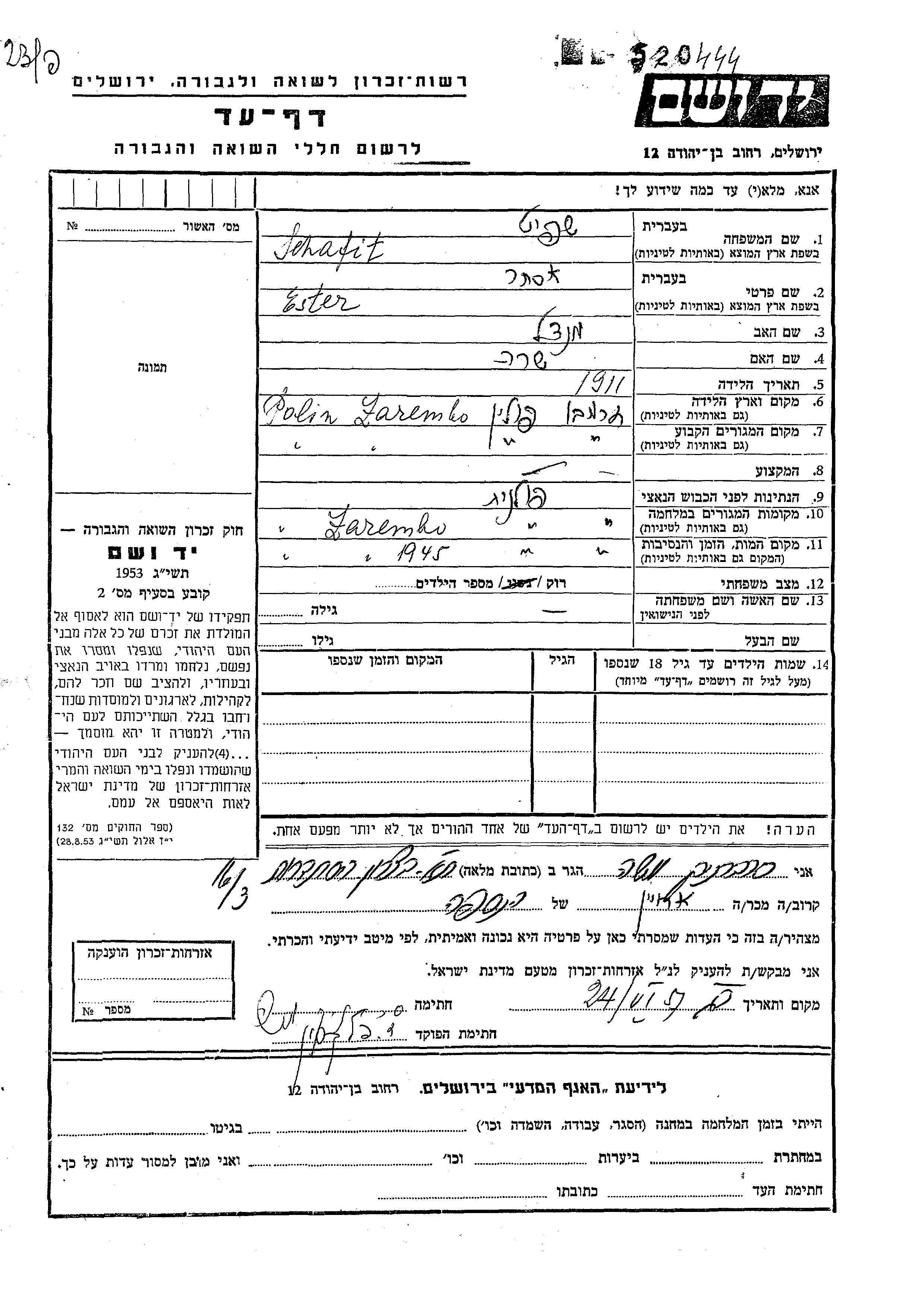 Ester wurde in der Schoah ermordet. Todesort: Zareby, Polen im Jahr 1945.