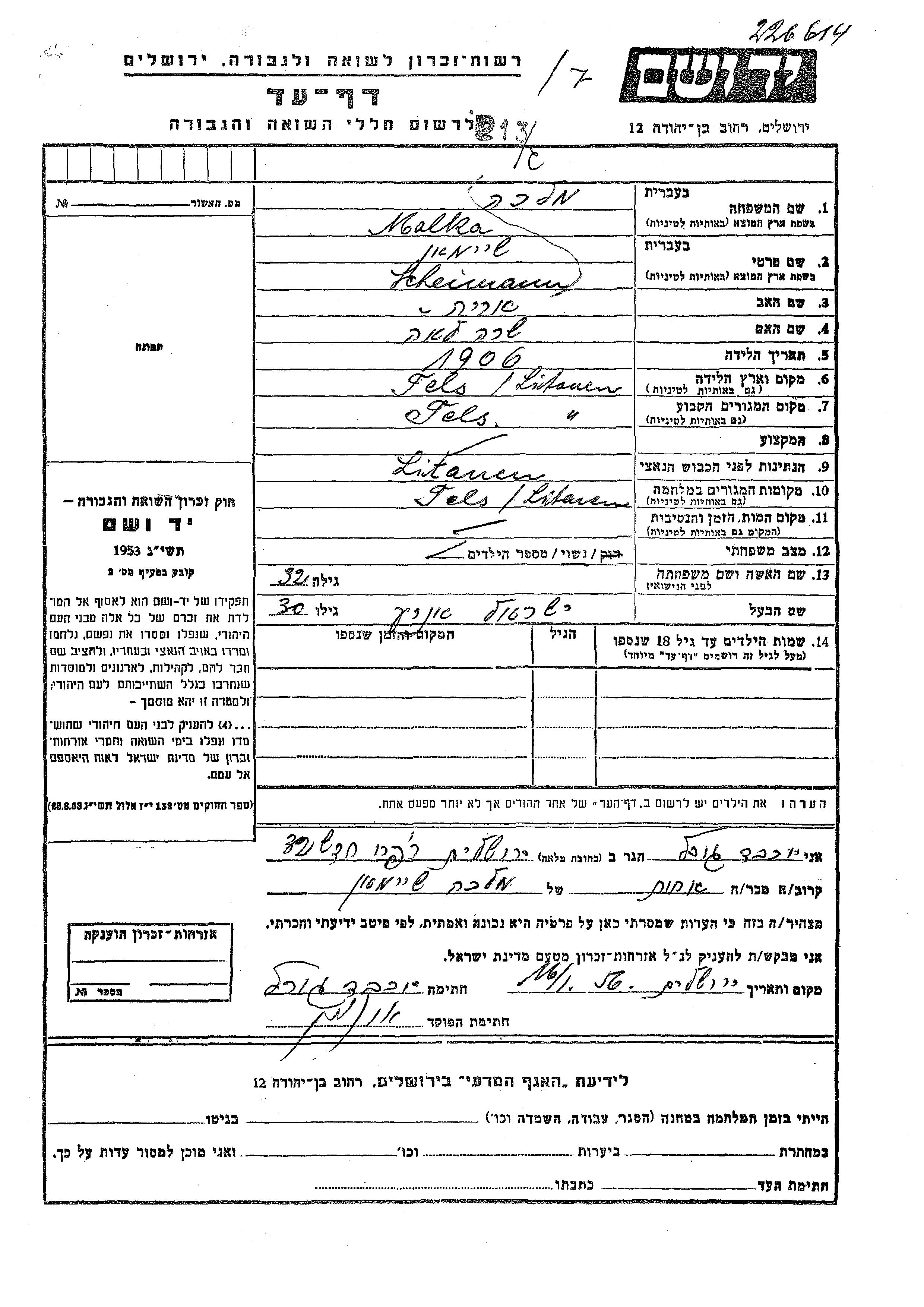 Malka wurde in der Schoah ermordet.