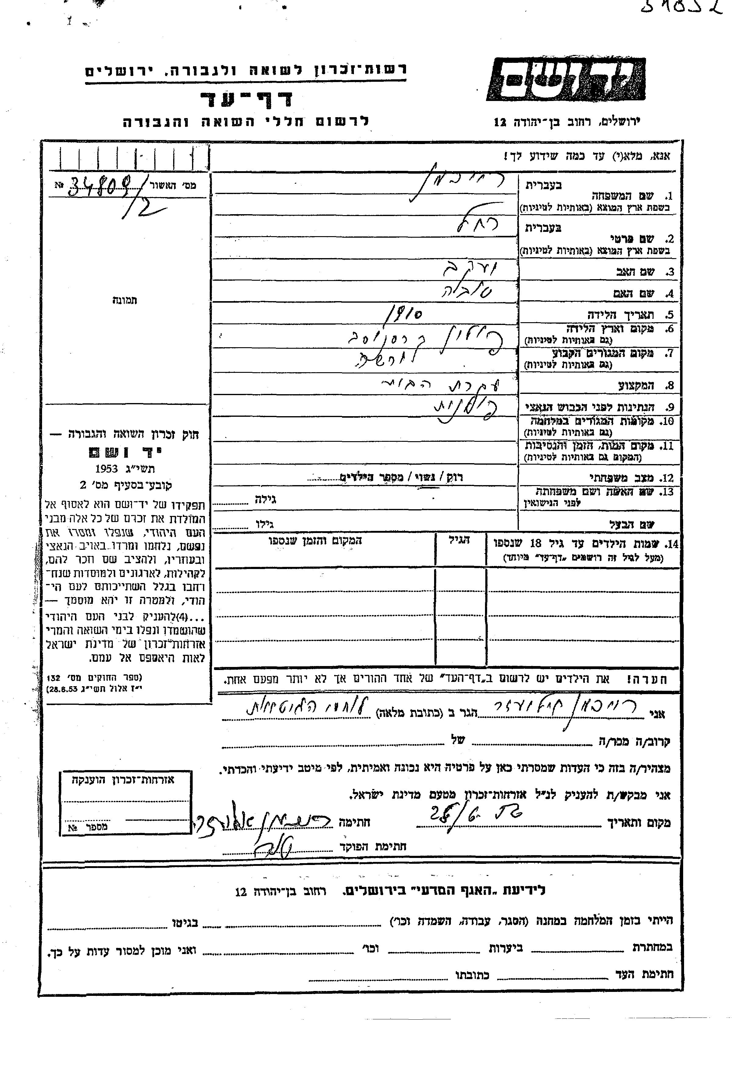 Rakhel Reikhman wurde im Jahr 1910 in Krasnystaw, Polen geboren. Sie war die Tochter von Yaakov und Tova. Sie war Hausfrau und Verheiratet. Vor dem Zweiten Weltkrieg lebte sie in Warsaw, Polen.