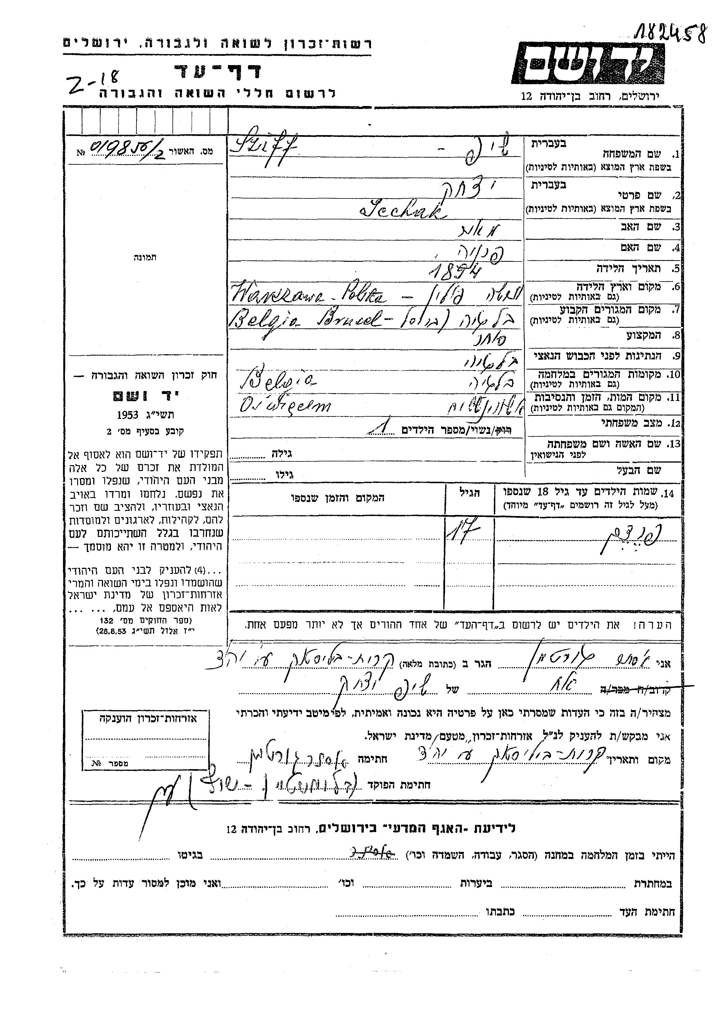 Sziff Icchak 1894 Brussels, Belgien Gedenkblatt