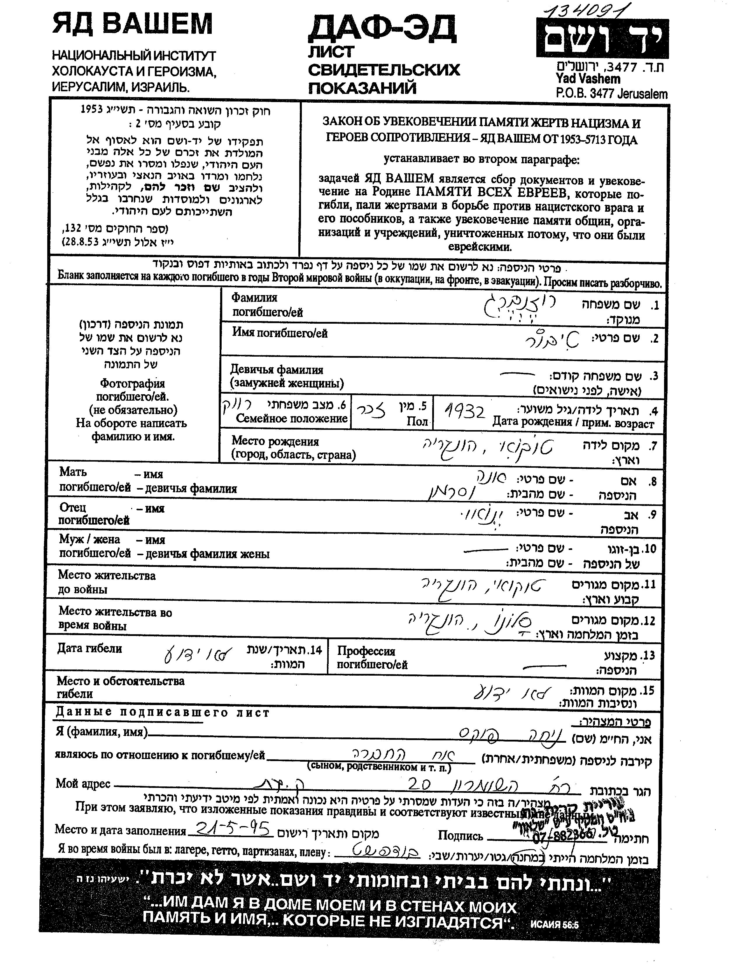 Rozenberg Tibor 1932 Tokaj, Ungarn Gedenkblatt