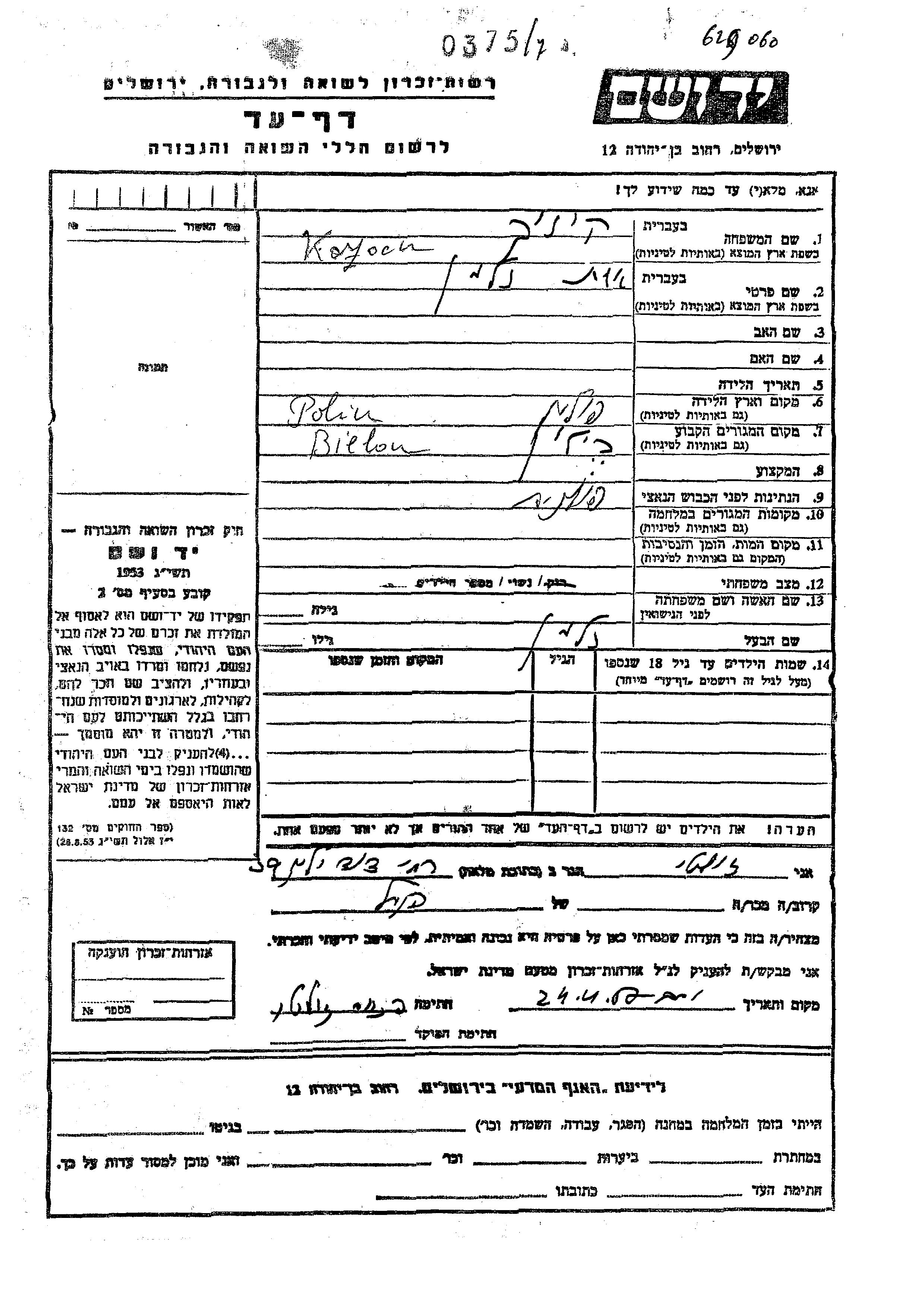 Vorname unbekannt Kozoch wurde in Polen geboren. Sie war mit Zalman Verheiratet. Vor dem Zweiten Weltkrieg lebte sie in Wielun, Polen.