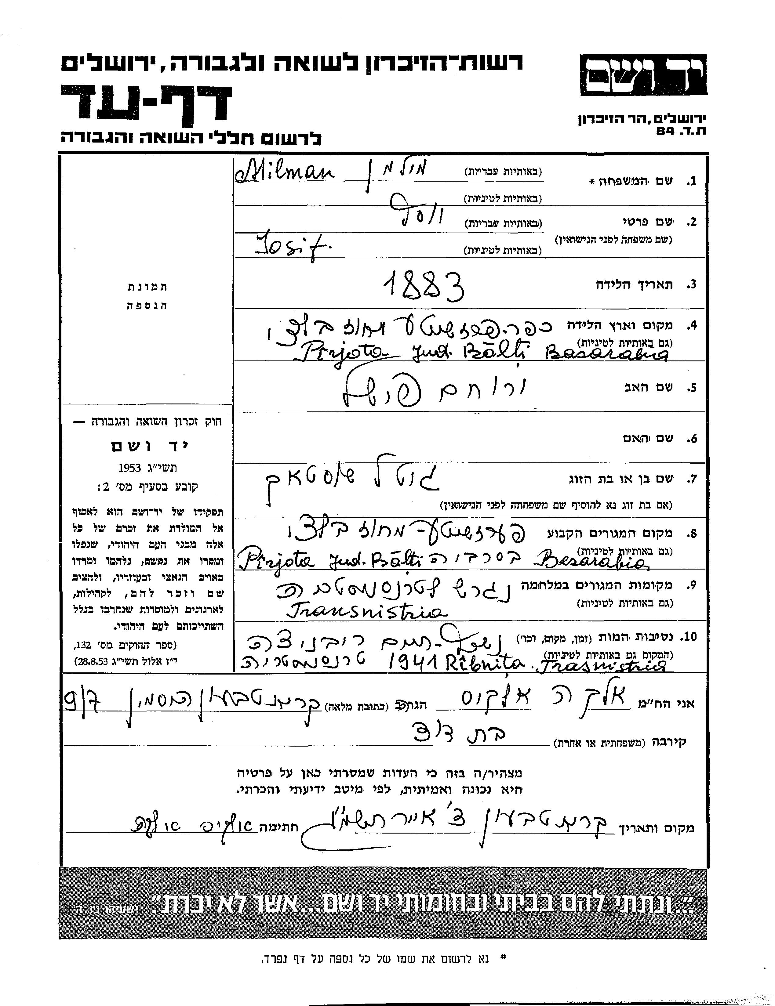 Suche nach einem Todesjahr im Zeitraum der Holocaust: 1933 bis 1945. Bitte wählen Sie 'Exakt' im Auswahlmenü, um nur nach einem einzelnen Jahr zu suchen, alternativ können Sie die flexibleren Optionen '+/- 2 Jahre' oder '+/- 5 Jahre' wählen.
