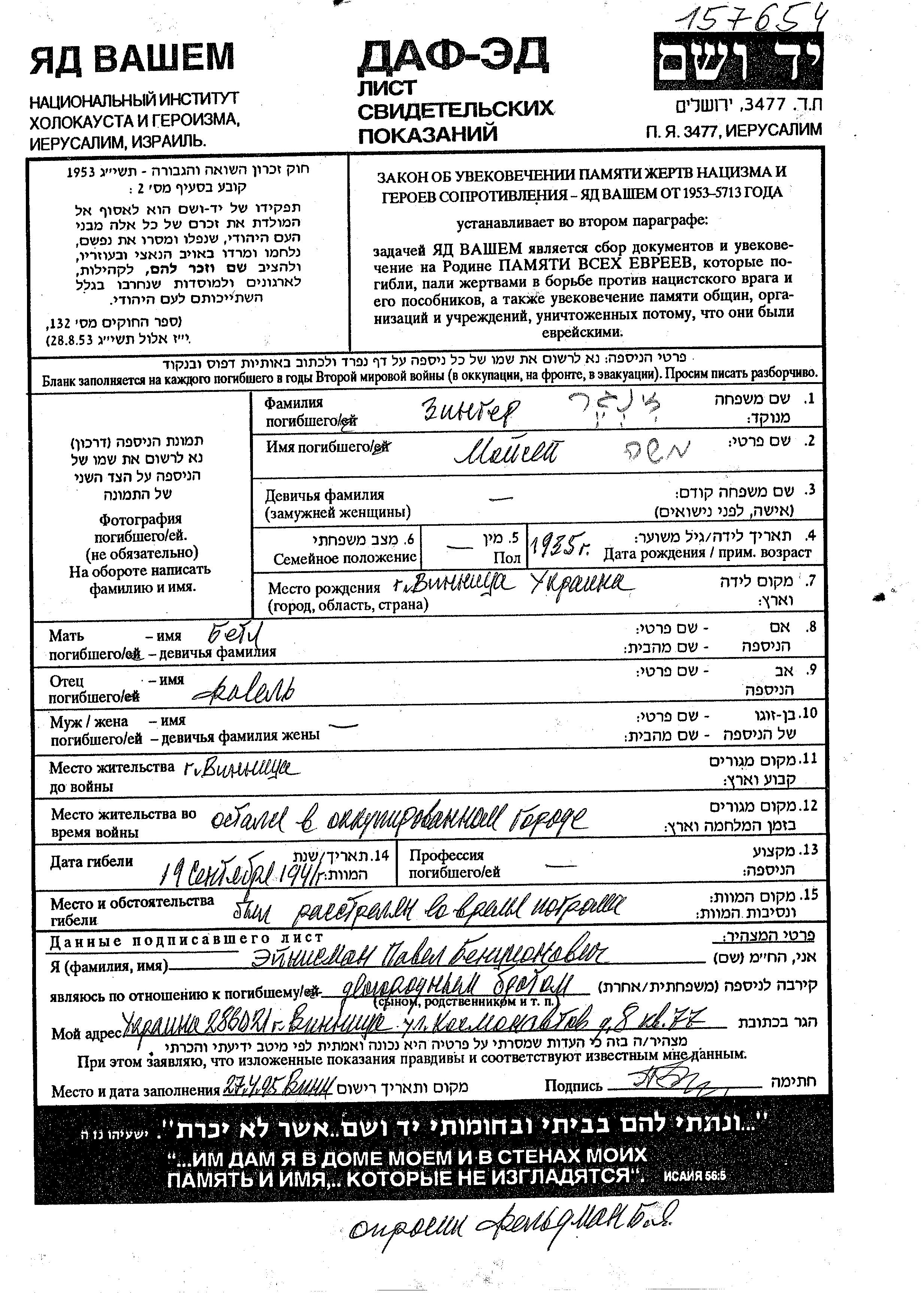 Moisei wurde in der Schoah ermordet. Todesort: Vinnitsa, Ukraine (UdSSR) im Jahr 19/09/1941.