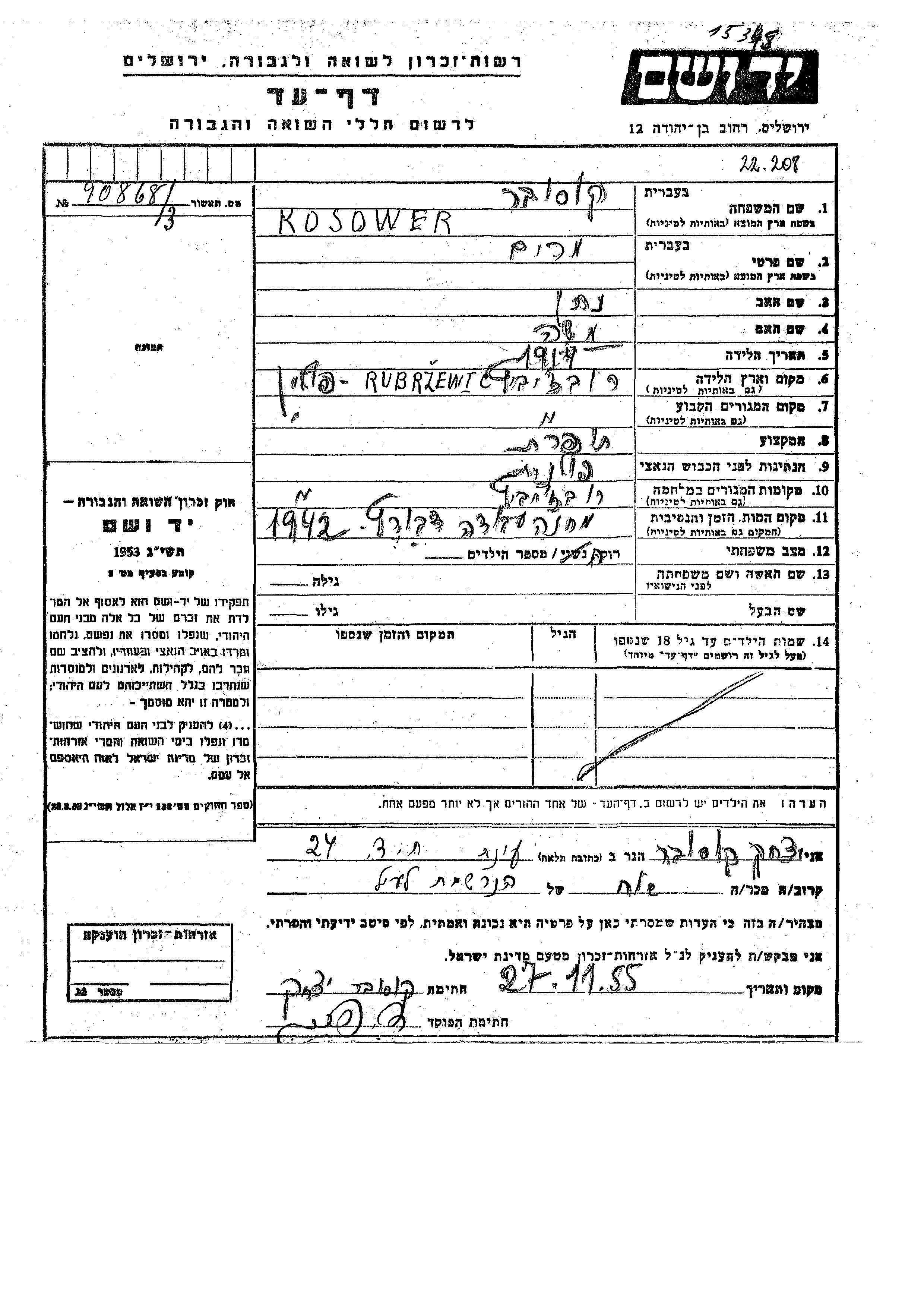 Kosower Miriam 1919 Rubiezewicze, Polen Gedenkblatt