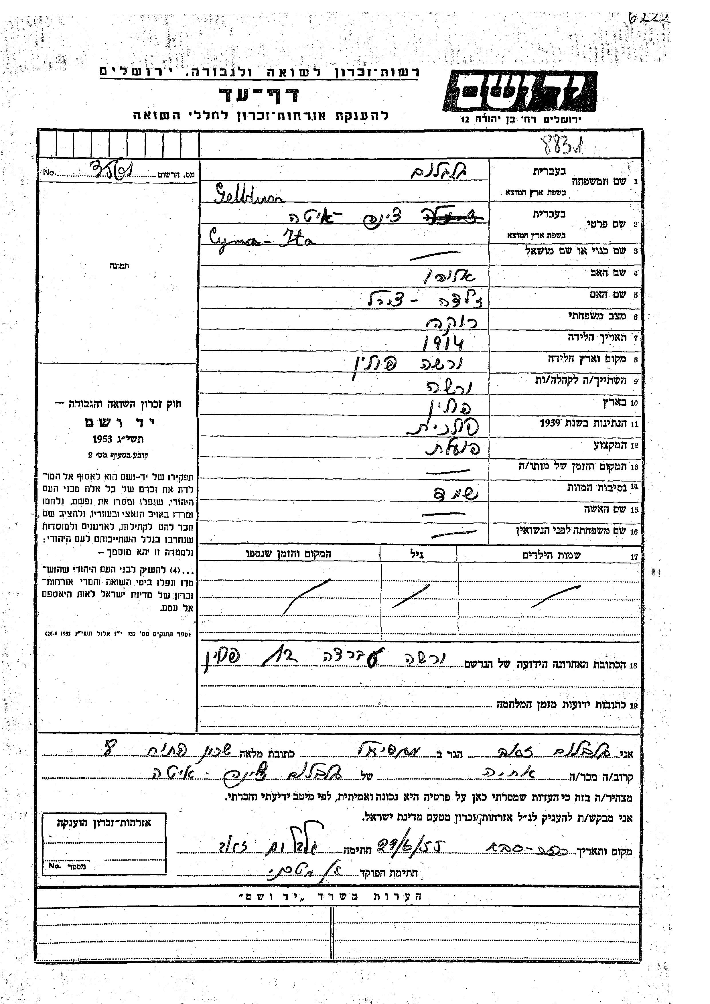 Cyna Ita Gelblum wurde im Jahr 1914 in Warszawa, Polen geboren. Sie war die Tochter von Eliahu und Zelda Tzirel. Sie war Arbeiter/-in. Vor dem Zweiten Weltkrieg lebte sie in Warszawa, Polen. Während des Krieges war sie in Warszawa, Polen.