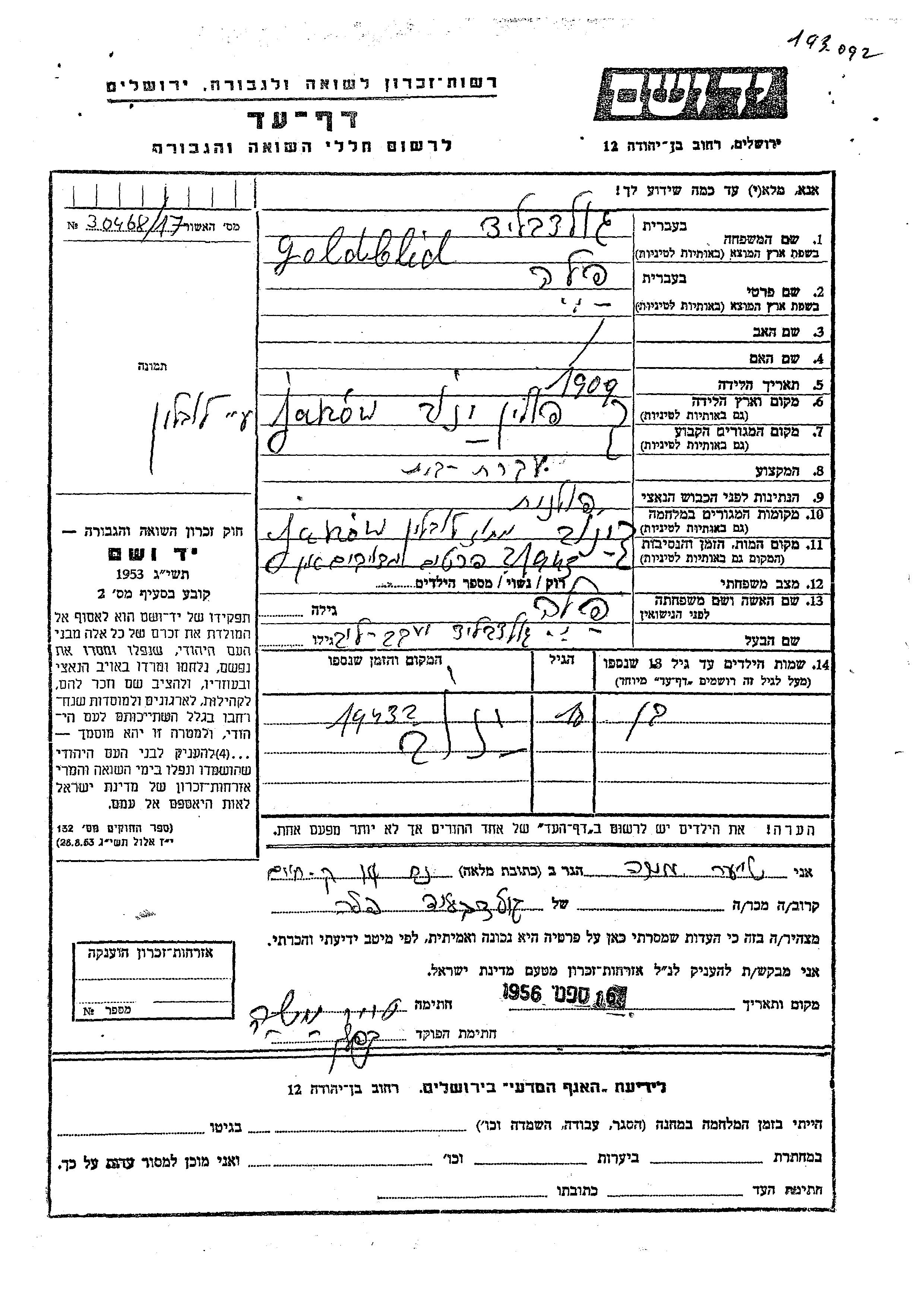 Fela Goldblid wurde im Jahr 1909 in Janow, Polen geboren. Sie war Hausfrau und mit Yaakov Leib Verheiratet. Vor dem Zweiten Weltkrieg lebte sie in Janow, Polen. Während des Krieges war sie in Janow, Polen.