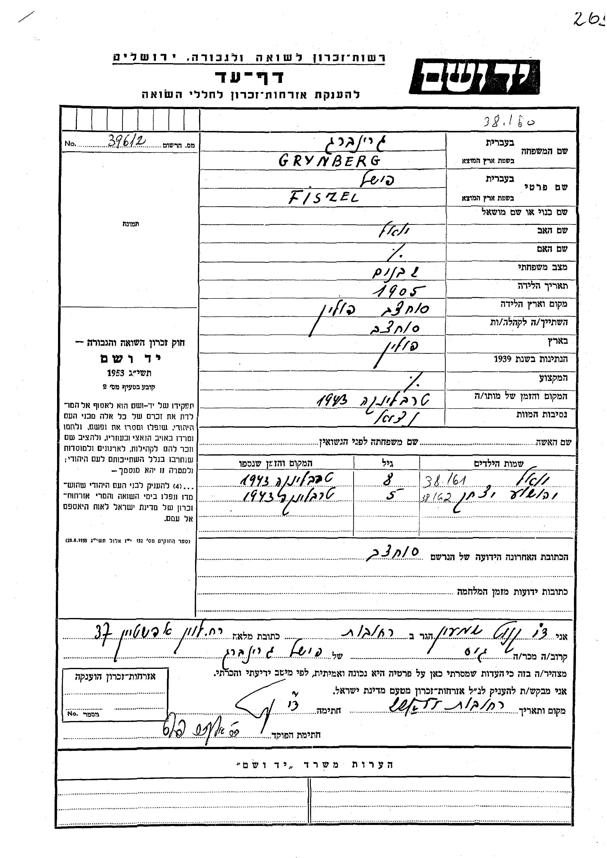 Fiszel wurde in der Schoah ermordet. Todesort: Treblinka, Polen im Jahr 1943.