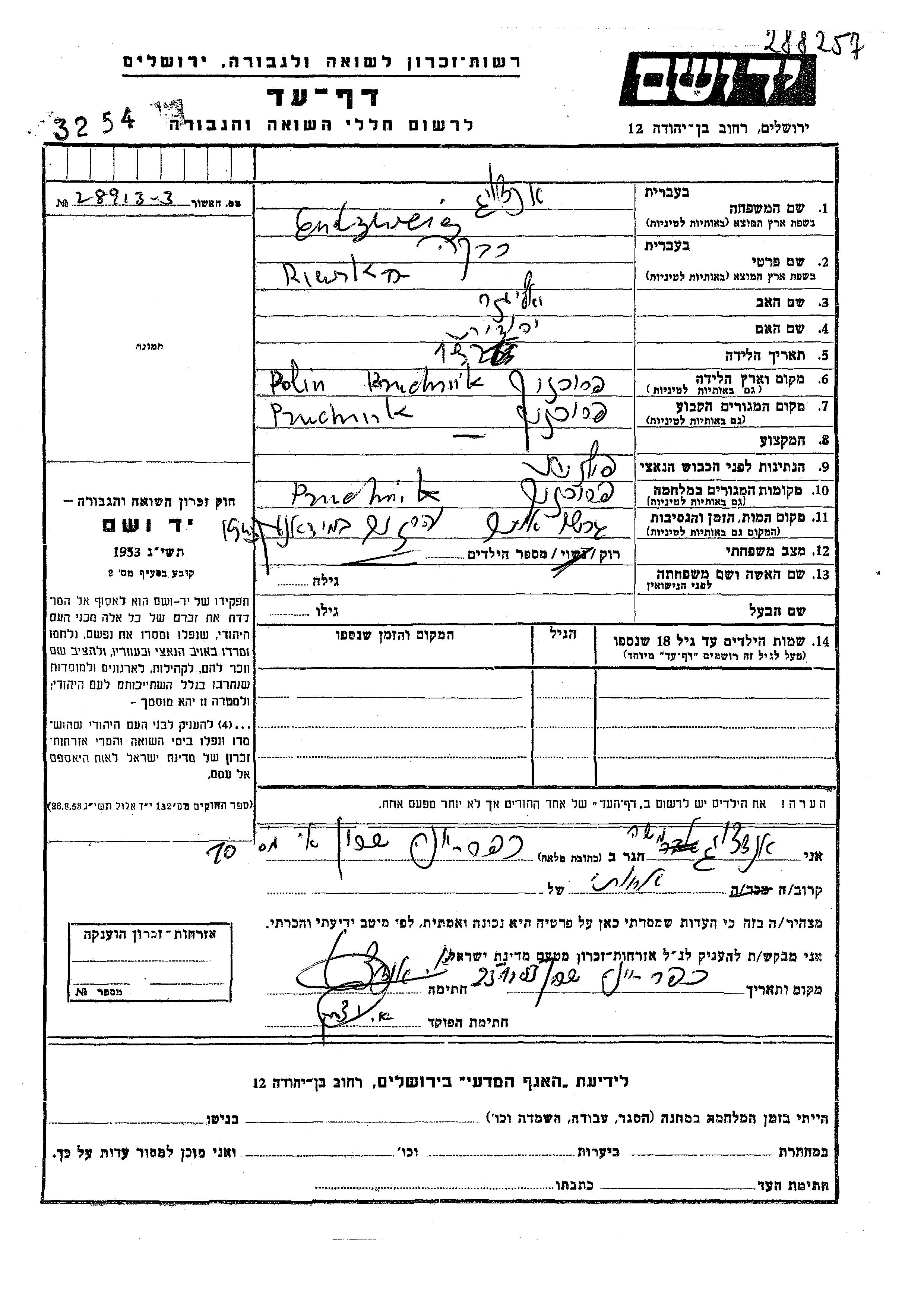 Riwka Endzweig Entzveig wurde im Jahr 1926 in Pruchnik, Polen geboren. Sie war die Tochter von Eliezer und Yehudit. Vor dem Zweiten Weltkrieg lebte sie in Pruchnik, Polen. Während des Krieges war sie in Pruchnik, Polen.