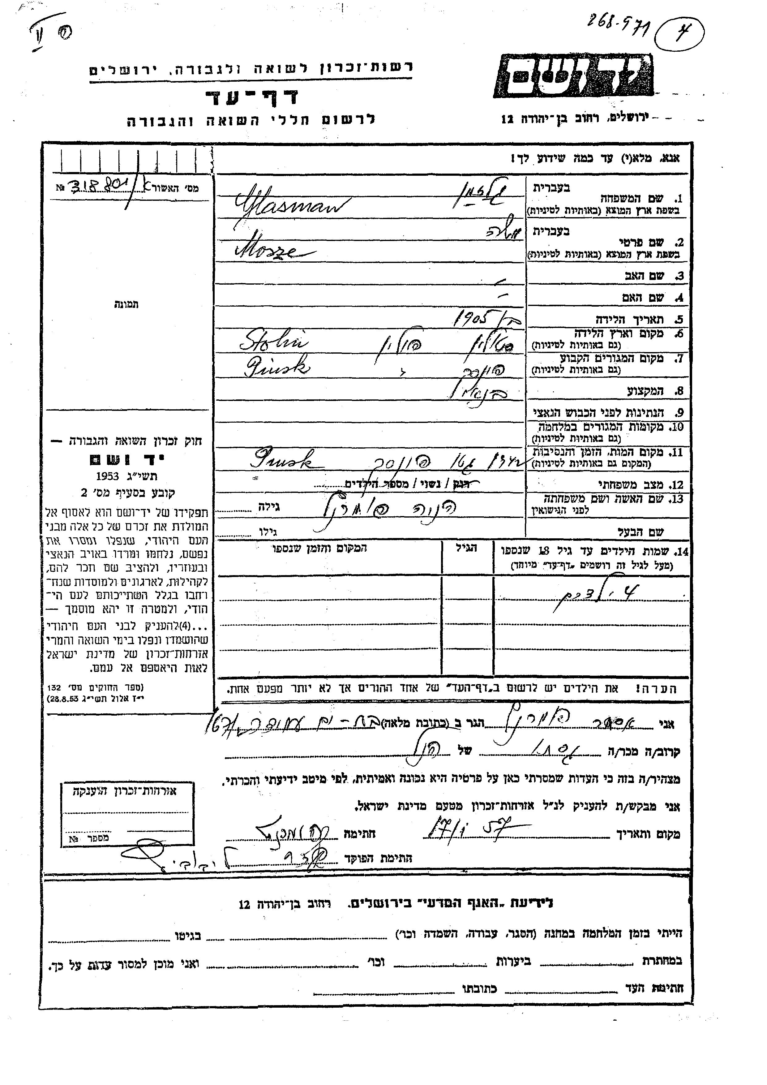 Mosze wurde in der Schoah ermordet. Todesort: Pinsk, Polen im Jahr 1942.