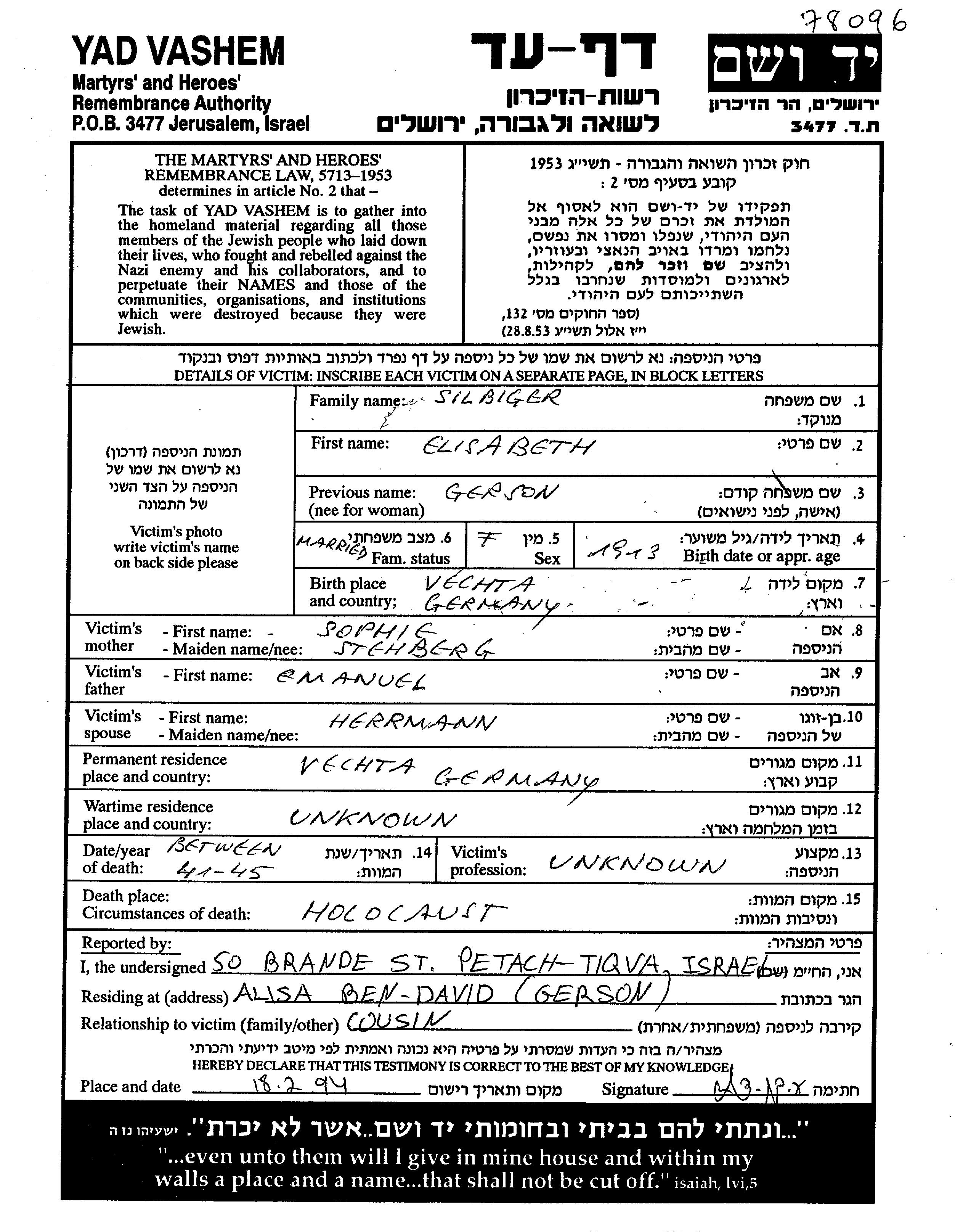 Suche nach einem Todesjahr im Zeitraum der Holocaust: 1933 bis 1945. Bitte wählen Sie 'Exakt' im Auswahlmenü, um nur nach einem einzelnen Jahr zu suchen, alternativ können Sie die flexibleren Optionen '+/- 2 Jahre' oder '+/- 5 Jahre' wählen.