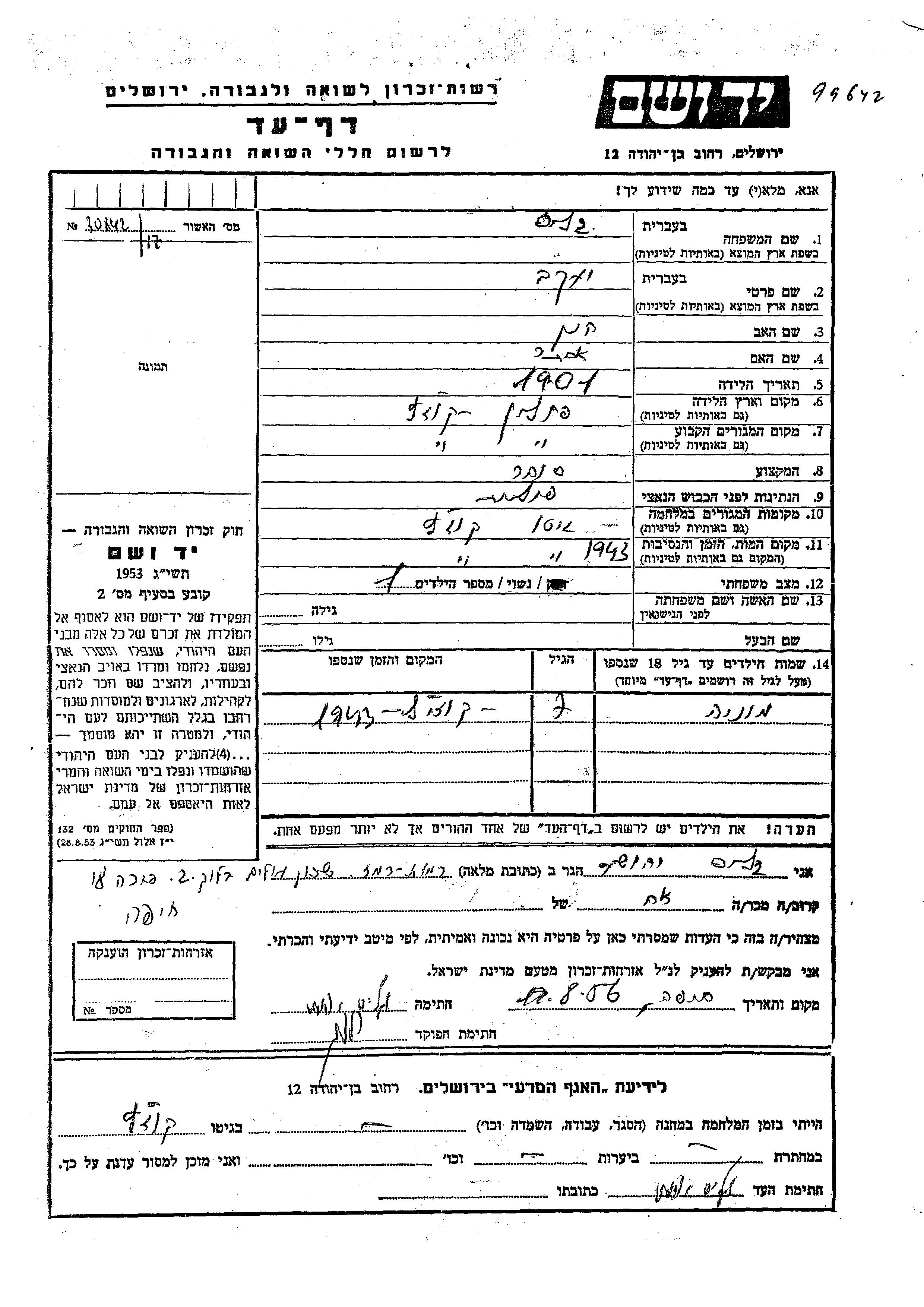 Gelis Yaakov 1901 Korzec, Polen Gedenkblatt
