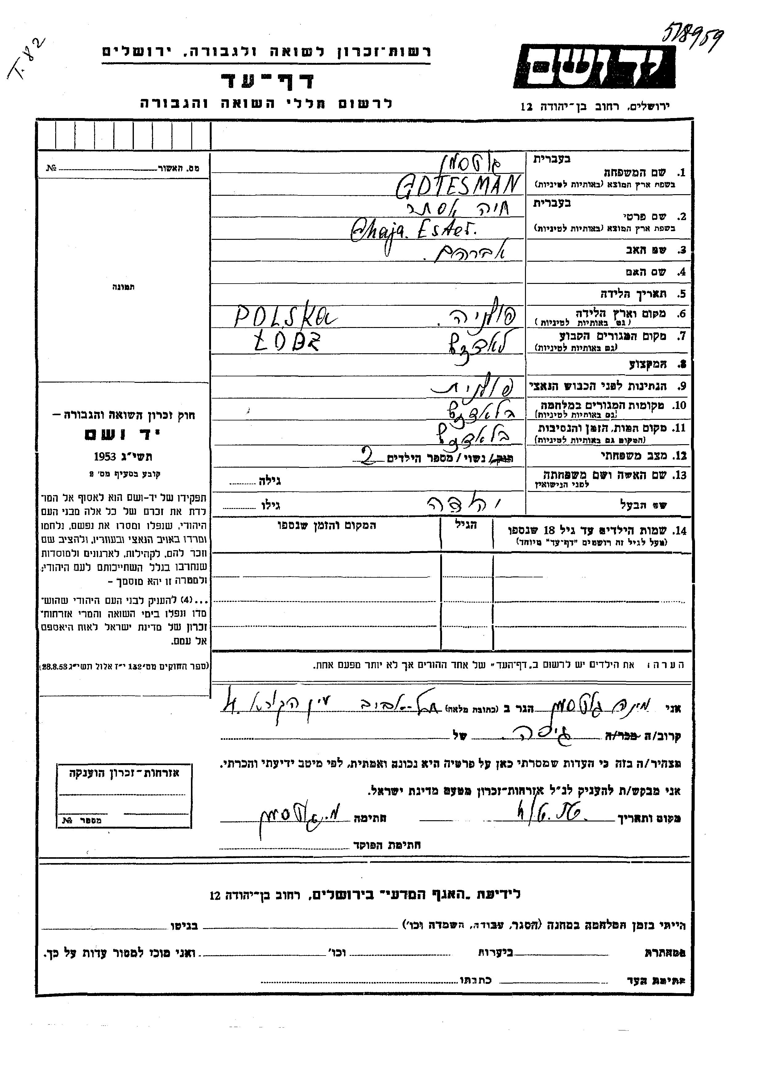 Gotesman Chaja Ester Lodz, Polen Gedenkblatt
