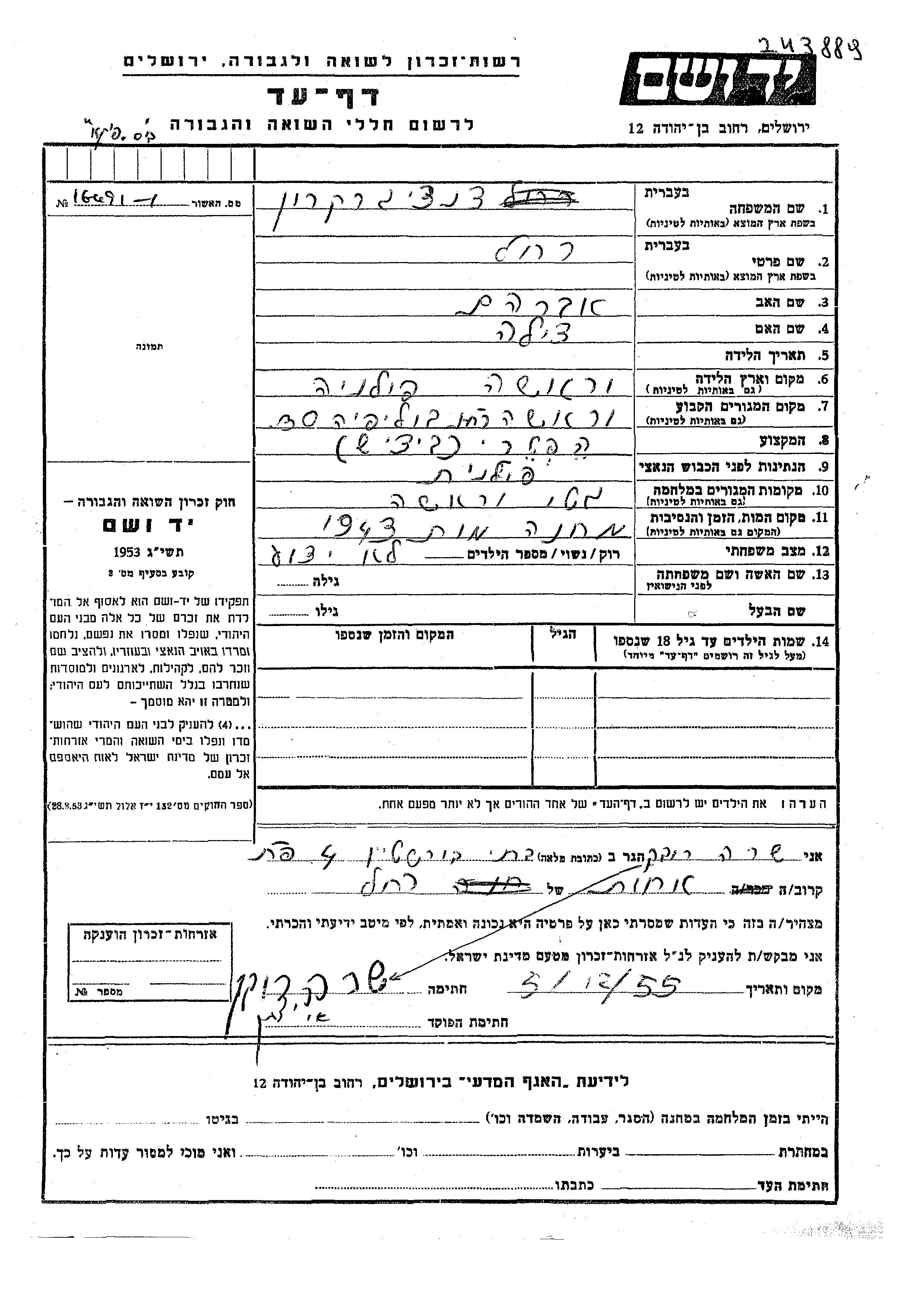 Rakhel wurde in der Schoah ermordet. Todesort: Warsaw, Polen im Jahr 1943.
