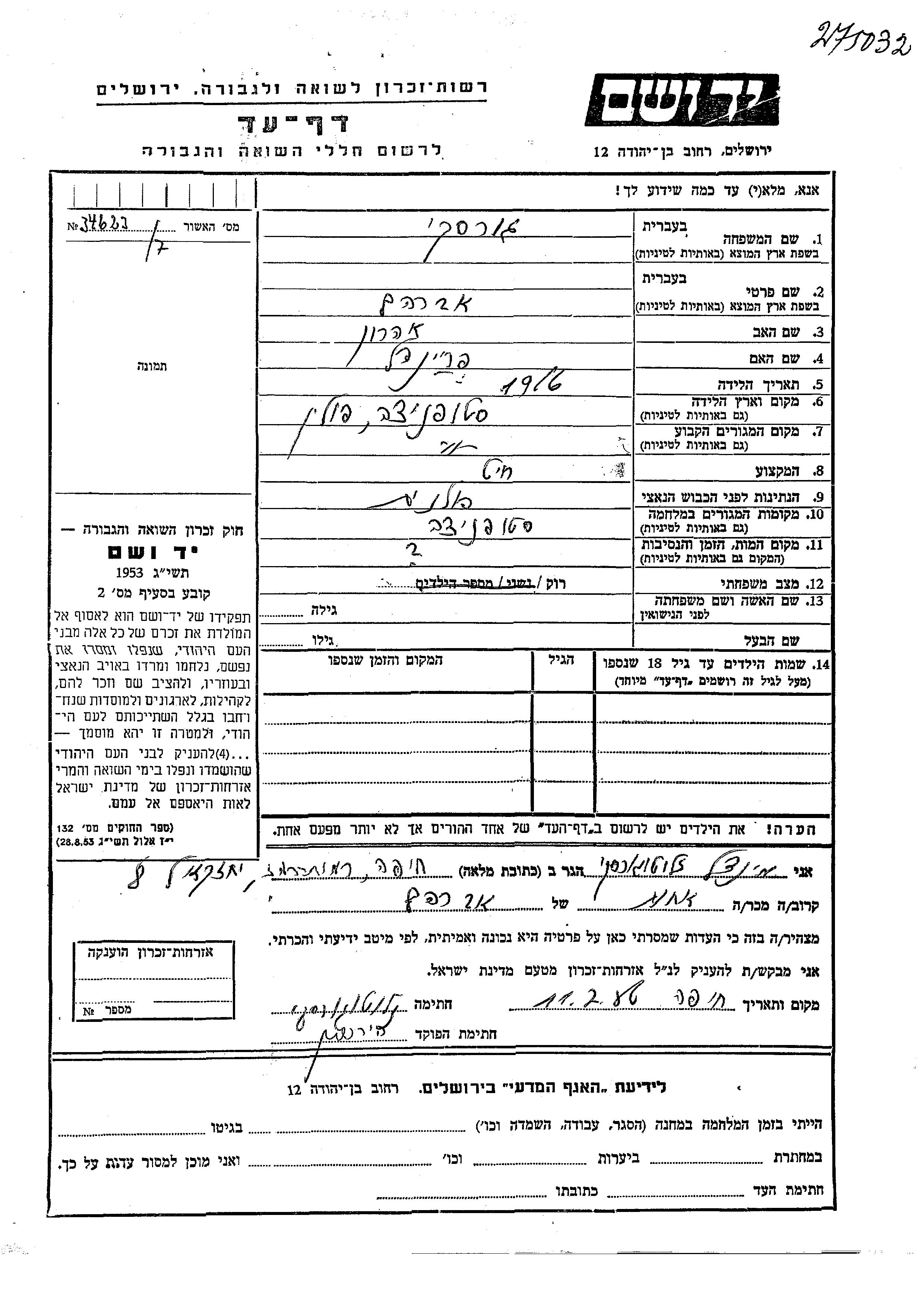 Avraham Gorski wurde im Jahr 1916 in Stopnica, Polen geboren. Er war der Sohn von Aharon und Freindel. Er war Schneider und Ledig. Vor dem Zweiten Weltkrieg lebte er in Stopnica, Polen. Während des Krieges war er in Stopnica, Polen.
